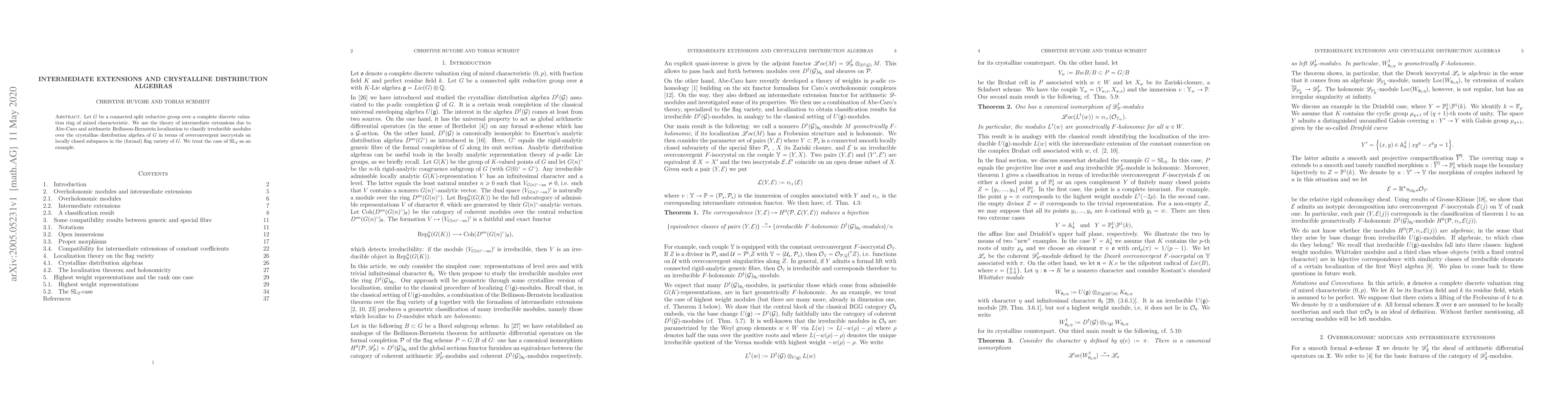 Let G be a connected split reductive group over a complete discrete valuation ring of mixed characteristic. We use the theory of intermediate extensions due to Abe-Caro and arithmetic Beilinson-Bernstein localization to classify irreducible modules over the crystalline distribution algebra of G in terms of overconvergent isocrystals on locally closed subspaces in the (formal) flag variety of G. We treat the case of SL(2) as an example.