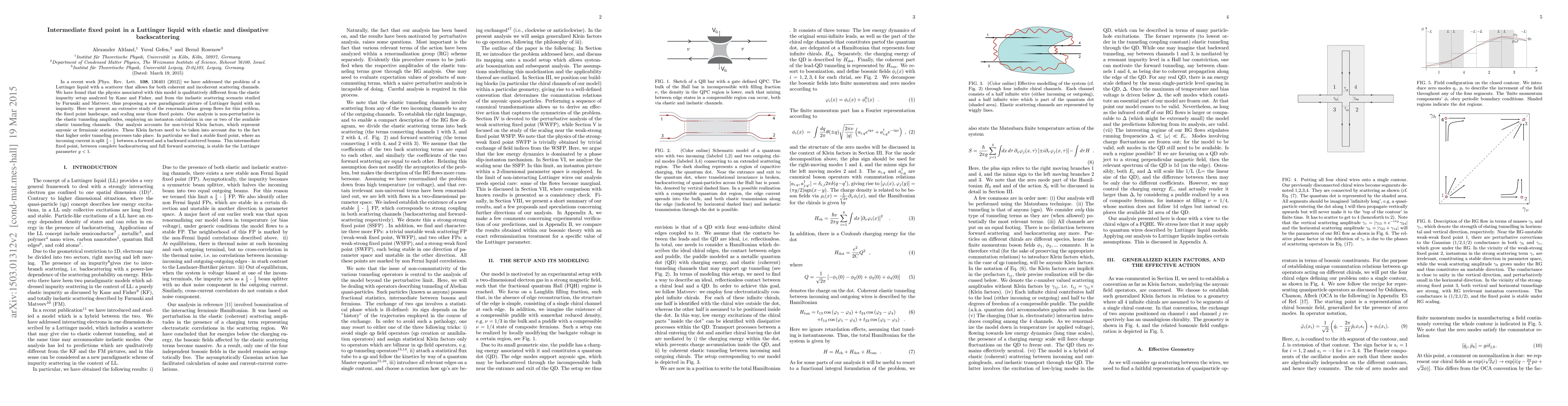 This paper investigates a Luttinger liquid with a scatterer allowing both elastic and dissipative backscattering, revealing a new paradigmatic model distinct from previous studies. It identifies an intermediate fixed point where current splits 50-50 between forward and backward scattering, stable for Luttinger parameters below 1, and employs non-perturbative methods to account for Klein factors.