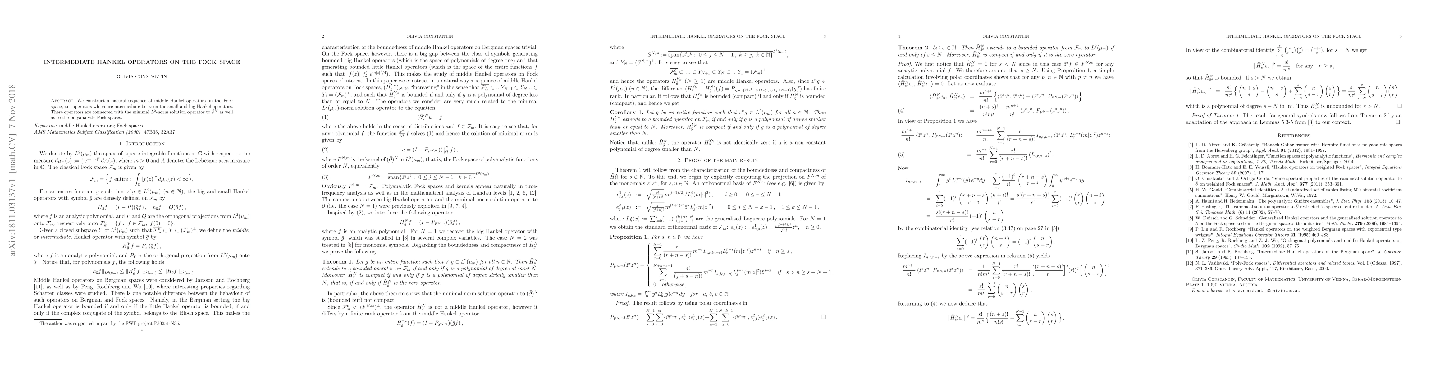 Summary: This paper introduces a sequence of intermediate Hankel operators on the Fock space, linking them to the minimal $L^2$-norm solution operator for $\bar\partial^N$ and to polyanalytic Fock spaces. These operators serve as a bridge between small and large Hankel operators.