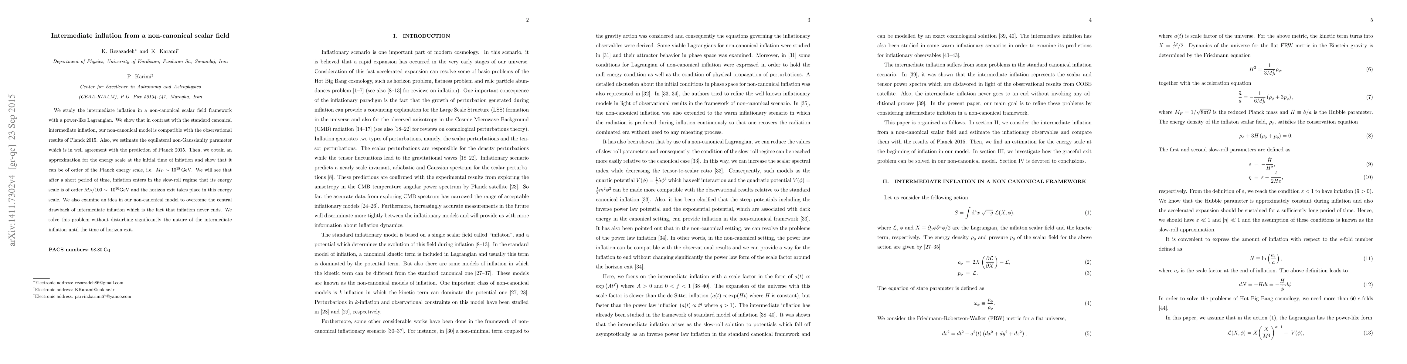 This paper explores intermediate inflation driven by a non-canonical scalar field with a power-like Lagrangian, demonstrating compatibility with Planck 2015 observations and estimating the equilateral non-Gaussianity parameter. It also proposes a solution to the issue of inflation never ending in intermediate models.
