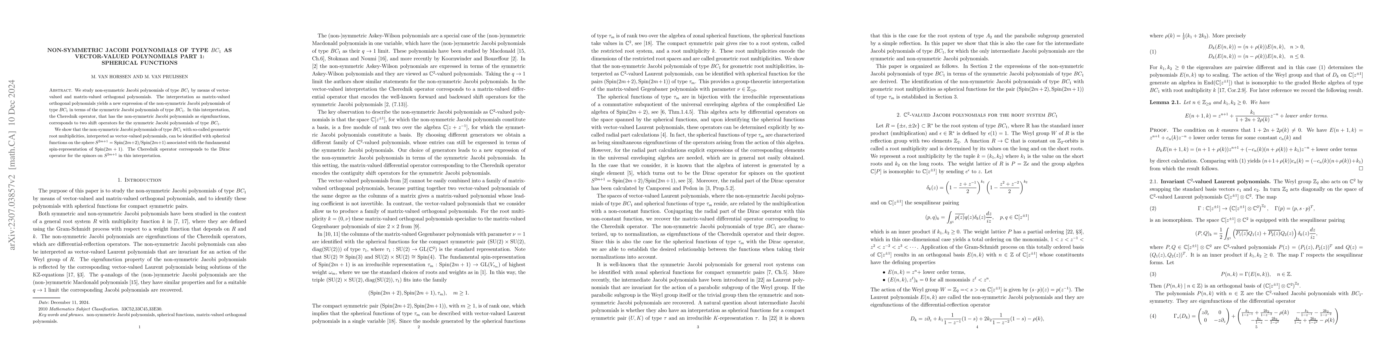 Intermediate Jacobi polynomials for a root system $R$ with Weyl group $W$ are orthogonal polynomials that are invariant under a parabolic subgroup of $W$. The extreme cases are the symmetric and the non-symmetric Jacobi polynomials studied by Heckman and Opdam. Intermediate Jacobi polynomials can also be understood as vector-valued orthogonal polynomials. We study the rank one case in this paper. The interpretation of the non-symmetric Jacobi polynomials as vector-valued polynomials has interesting consequences. The first is that the non-symmetric Jacobi polynomials can be expressed in terms of the symmetric ones. The second is that we recover a shift operator for the symmetric Jacobi polynomials that comes from the Hecke algebra representation. Thirdly, for geometric root multiplicities the vector-valued polynomials can be identified with spherical functions on the sphere $S^{2n}$ associated to the fundamental spin-representation. In this way the Cherednik-operator appears as a Dirac operator for the spinors on this space.