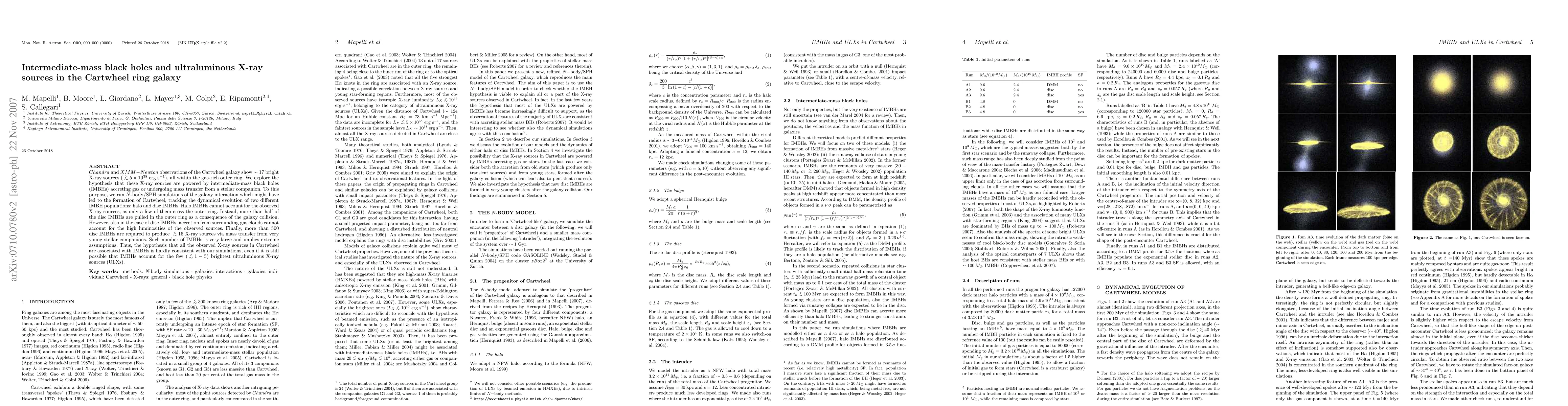 This study investigates the possibility that intermediate-mass black holes (IMBHs) in the Cartwheel galaxy's outer ring power the observed ultraluminous X-ray sources (ULXs). Simulations suggest that while disc IMBHs could be present in the ring, they likely do not account for the majority of the observed ULXs due to insufficient luminosity from accretion or mass transfer.