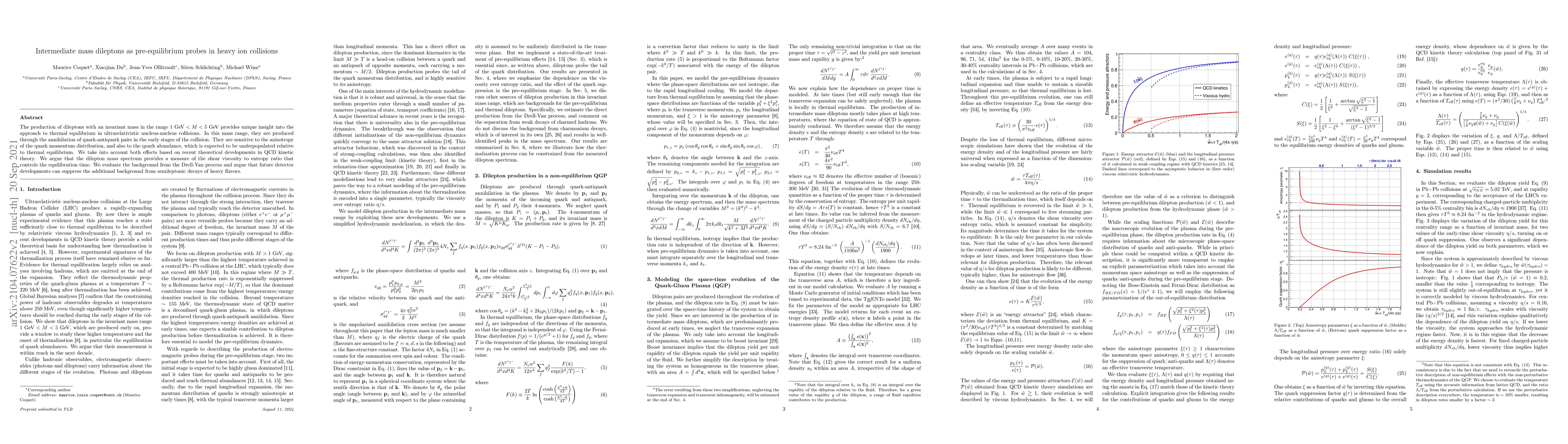 The production of dileptons with an invariant mass in the range 1 GeV < M < 5 GeV provides unique insight into the approach to thermal equilibrium in ultrarelativistic nucleus-nucleus collisions. In this mass range, they are produced through the annihilation of quark-antiquark pairs in the early stages of the collision. They are sensitive to the anisotropy of the quark momentum distribution, and also to the quark abundance, which is expected to be underpopulated relative to thermal equilibrium. We take into account both effects based on recent theoretical developments in QCD kinetic theory, and study how the dilepton mass spectrum depends on the shear viscosity to entropy ratio that controls the equilibration time. We evaluate the background from the Drell-Yan process and argue that future detector developments can suppress the additional background from semileptonic decays of heavy flavors.