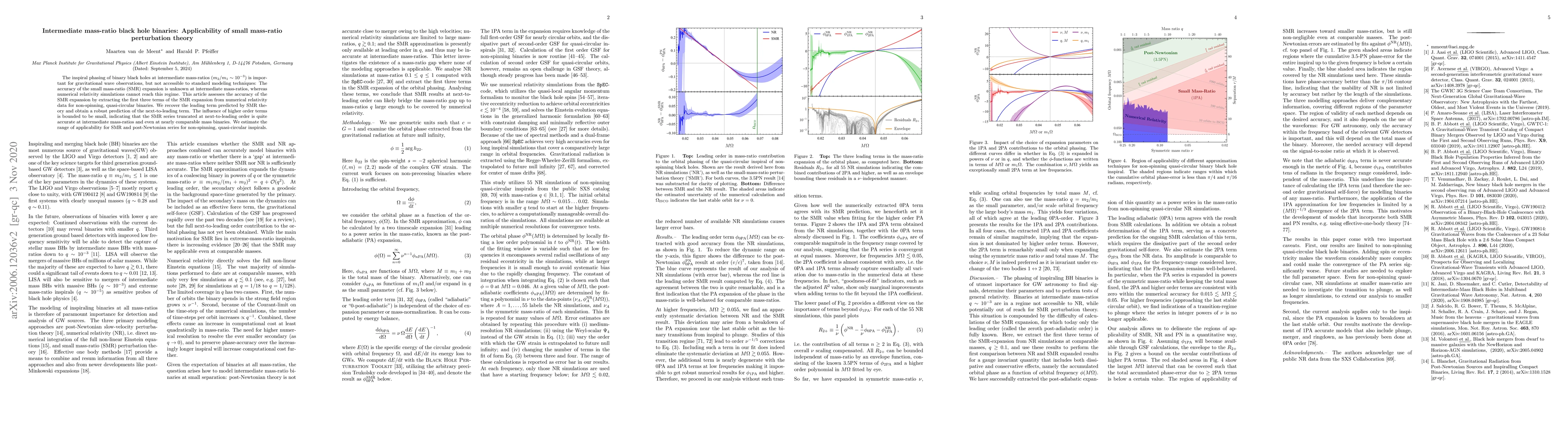 The dynamics of merging black hole binaries with small mass-ratios (SMR) can be expressed as a series in the symmetric mass-ratio, the post-adiabatic expansion. Using numerical relativity simulations, we compute the first three terms in this series for quasicircular non-spinning binaries. We recover the leading term predicted by SMR perturbation theory, and obtain a robust prediction of the 1-post-adiabatic term. The 2-post-adiabatic term is found to be small, indicating that the 1PA approximation may be quite accurate even for nearly comparable mass binaries. We also estimate the range of applicability for SMR and post-Newtonian series for non-spinning, quasi-circular inspirals.