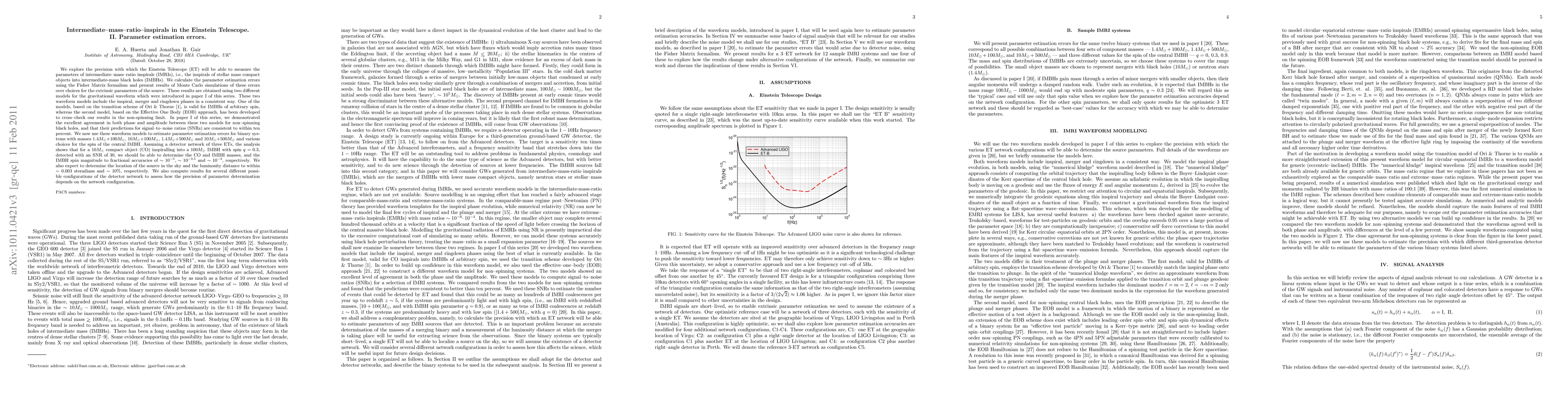 We explore the precision with which the Einstein Telescope (ET) will be able to measure the parameters of intermediate-mass-ratio inspirals (IMRIs). We calculate the parameter estimation errors using the Fisher Matrix formalism and present results of a Monte Carlo simulation of these errors over choices for the extrinsic parameters of the source. These results are obtained using two different models for the gravitational waveform which were introduced in paper I of this series. These two waveform models include the inspiral, merger and ringdown phases in a consistent way. One of the models, based on the transition scheme of Ori & Thorne [1], is valid for IMBHs of arbitrary spin, whereas the second model, based on the Effective One Body (EOB) approach, has been developed to cross-check our results in the non-spinning limit. In paper I of this series, we demonstrated the excellent agreement in both phase and amplitude between these two models for non-spinning black holes, and that their predictions for signal-to-noise ratios (SNRs) are consistent to within ten percent. We now use these models to estimate parameter estimation errors for binary systems with masses 1.4+100, 10+100, 1.4+500 and 10+500 solar masses (SMs), and various choices for the spin of the central intermediate-mass black hole (IMBH). Assuming a detector network of three ETs, the analysis shows that for a 10 SM compact object (CO) inspiralling into a 100 SM IMBH with spin q=0.3, detected with an SNR of 30, we should be able to determine the CO and IMBH masses, and the IMBH spin magnitude to fractional accuracies of 0.001, 0.0003, and 0.001, respectively. We also expect to determine the location of the source in the sky and the luminosity distance to within 0.003 steradians, and 10%, respectively. We also assess how the precision of parameter determination depends on the network configuration.