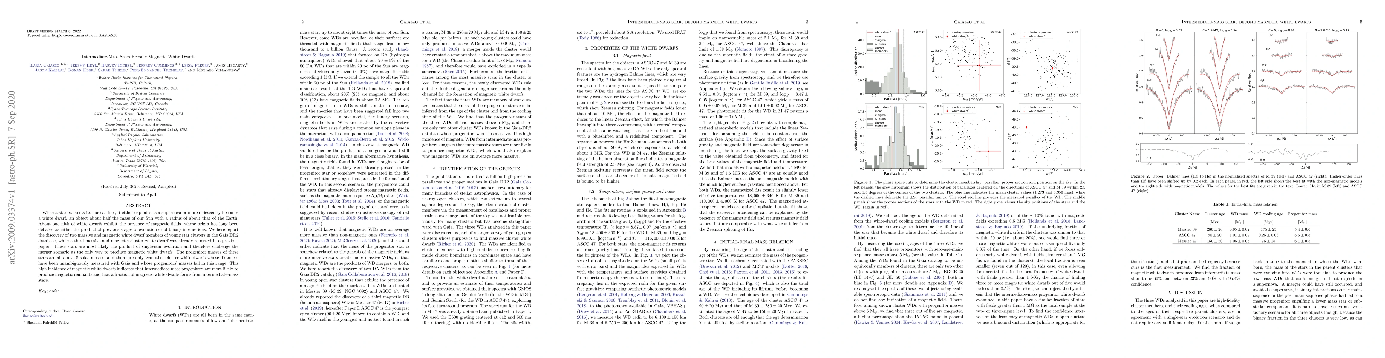 This paper reports the discovery of three magnetic white dwarfs in young star clusters, challenging the notion that magnetic white dwarfs only form through binary mergers. The progenitors of these stars, with masses above 5 solar masses, suggest that intermediate-mass stars are more likely to produce magnetic white dwarfs.