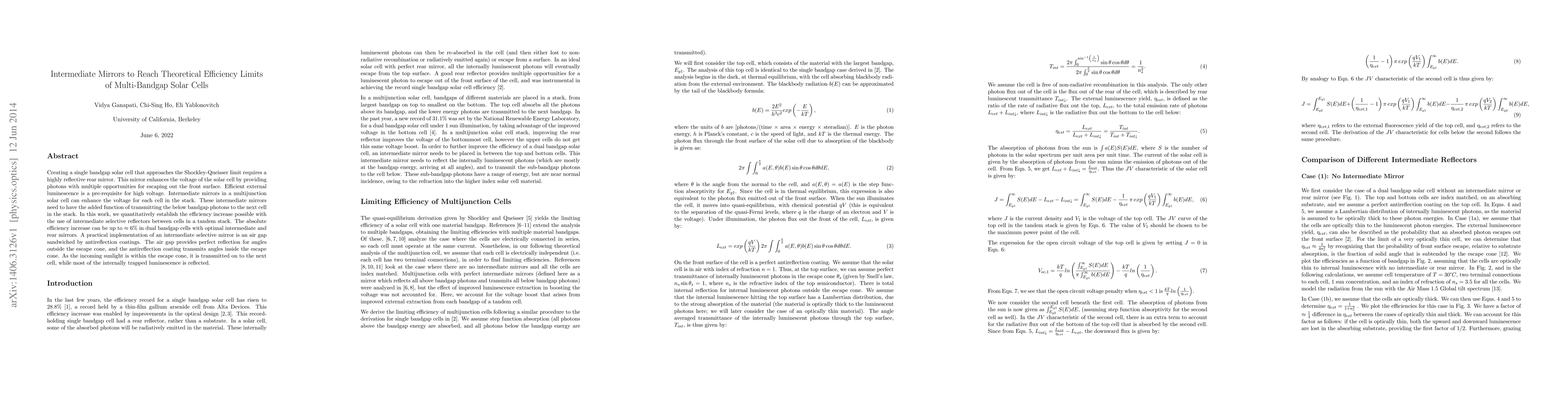 Researchers found that intermediate mirrors in multi-bandgap solar cells can increase efficiency up to 6% by enhancing voltage and transmitting below bandgap photons. This innovation uses air gaps sandwiched by antireflection coatings to improve performance.