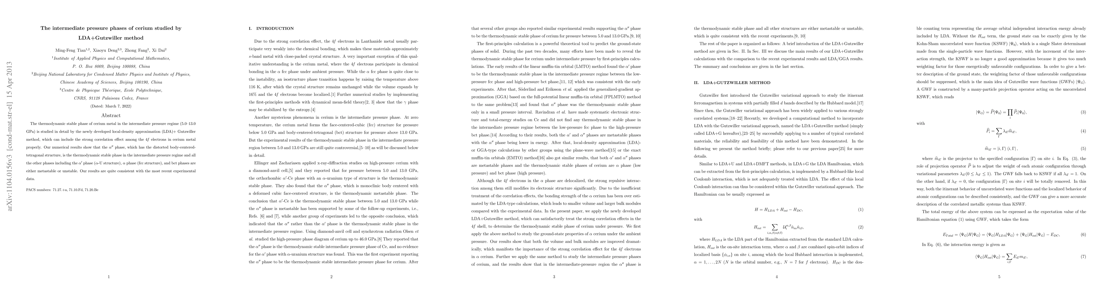 The thermodynamic stable phase of cerium metal in the intermediate pressure regime (5.0--13.0 GPa) is studied in detail by the newly developed local-density approximation (LDA)+ Gutzwiller method, which can include the strong correlation effect among the 4\textit{f} electrons in cerium metal properly. Our numerical results show that the $\alpha"$ phase, which has the distorted body-centered-tetragonal structure, is the thermodynamic stable phase in the intermediate pressure regime and all the other phases including the $\alpha'$ phase ($\alpha$-U structure), $\alpha$ phase (fcc structure), and bct phases are either metastable or unstable. Our results are quite consistent with the most recent experimental data.