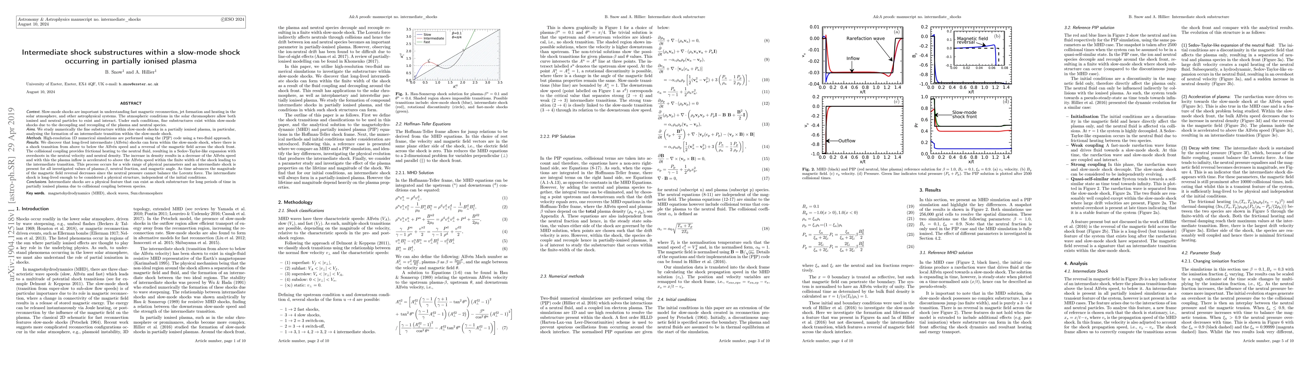 Researchers found that slow-mode shocks in partially ionized plasma can form intermediate transition shock structures, which are long-lived and independent of initial conditions. These shocks occur due to the decoupling and recoupling of plasma and neutral species.