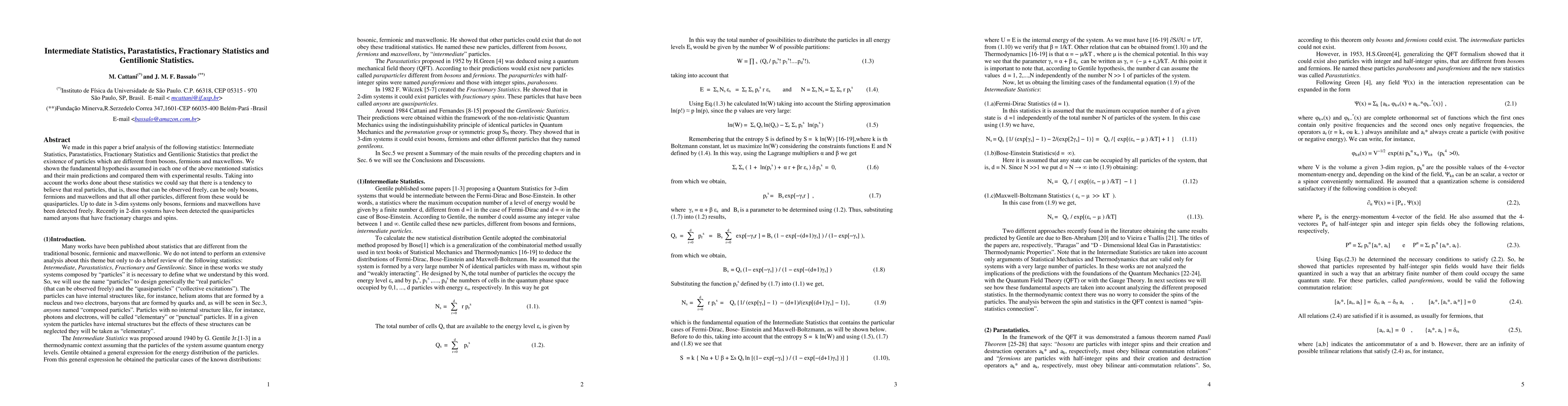 This paper analyzes Intermediate, Parastatistics, Fractionary, and Gentileonic Statistics, which propose particles beyond bosons, fermions, and maxwellons. It compares their fundamental hypotheses and predictions with experimental results, suggesting that observed particles are likely bosons, fermions, and maxwellons, while others are quasiparticles, with recent detections of anyons in 2-dimensional systems.
