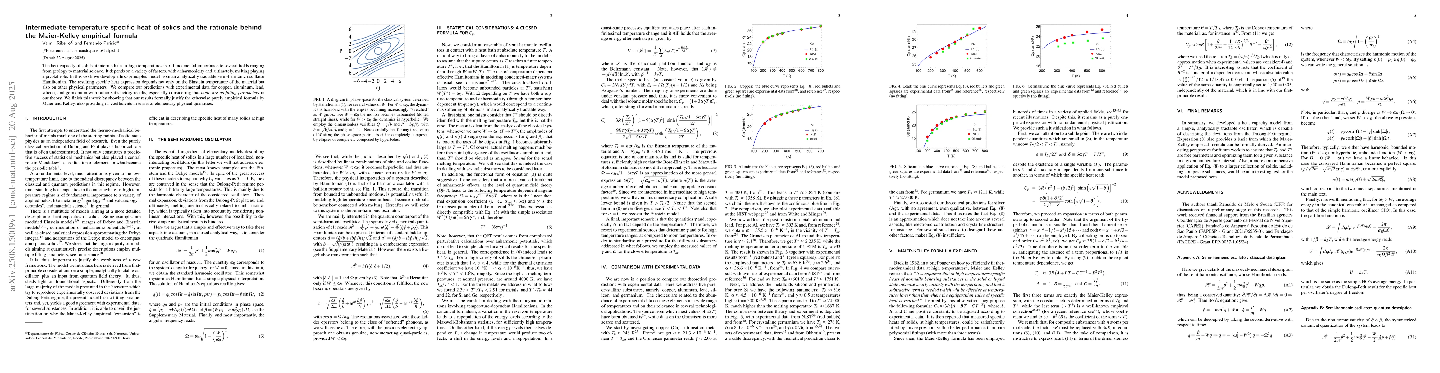The heat capacity of solids at intermediate-to-high temperatures is of fundamental importance to several fields ranging from geology to material science. It depends on a variety of factors, with anharmonicity and, ultimately, melting playing a pivotal role. In this work we develop a first-principles model from an analytically tractable semi-harmonic oscillator Hamiltonian. The resulting specific heat expression depends not only on the Einstein temperature of the material but also on other physical parameters. We compare our predictions with experimental data for copper, aluminum, lead, silicon, and germanium with rather satisfactory results, especially considering that there are no fitting parameters in our theory. We finish this work by showing that our results formally justify the otherwise purely empirical formula by Maier and Kelley, also providing its coefficients in terms of elementary physical quantities.