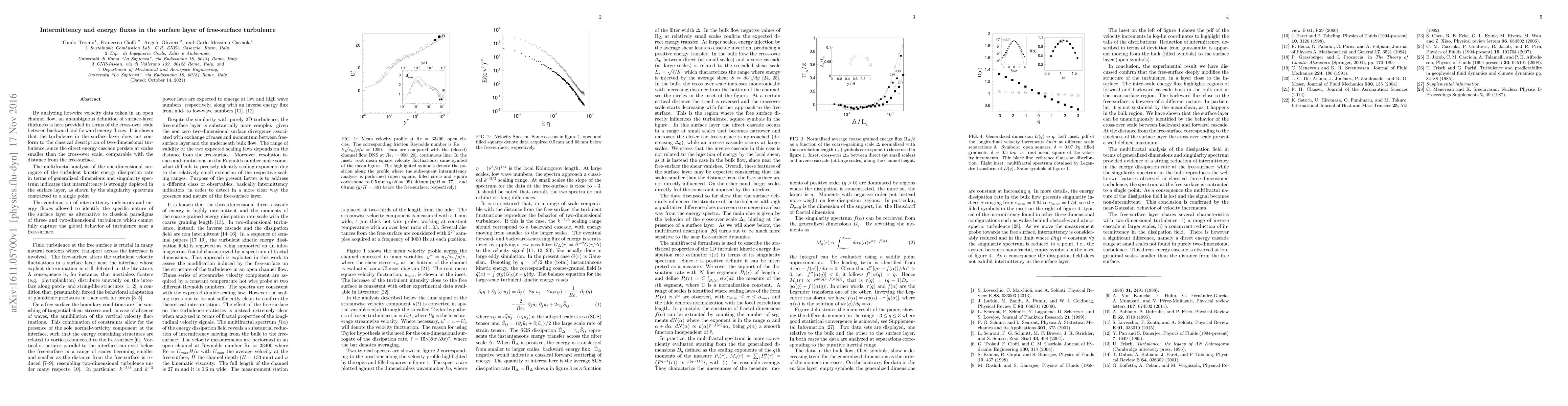 By analyzing hot-wire velocity data taken in an open channel flow, an unambiguous definition of surface-layer thickness is here provided in terms of the cross-over scale between backward and forward energy fluxes. It is shown that the turbulence in the surface layer does not conform to the classical description of two-dimensional turbulence, since the direct energy cascade persists at scales smaller than the cross-over scale, comparable with the distance from the free-surface. The multifractal analysis of the one-dimensional surrogate of the turbulent kinetic energy dissipation rate in terms of generalized dimensions and singularity spectrum indicates that intermittency is strongly depleted in the surface layer, as shown by the singularity spectrum contracted to a single point. The combination of intermittency indicators and energy fluxes allowed to identify the specific nature of the surface layer as alternative to classical paradigms of three- and two-dimensional turbulence which cannot fully capture the global behavior of turbulence near a free-surface.