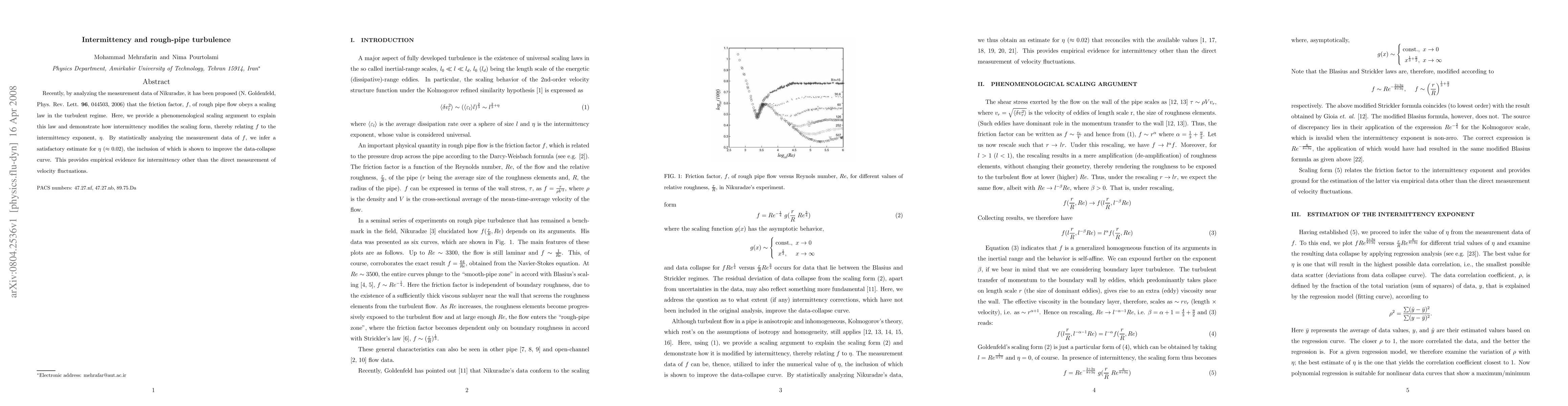 This paper proposes a scaling law for the friction factor in turbulent rough-pipe flow, explaining it through a phenomenological argument and demonstrating how intermittency modifies this scaling. The analysis of measurement data estimates the intermittency exponent ($\eta \approx 0.02$), which improves the data-collapse curve, providing empirical evidence for intermittency.