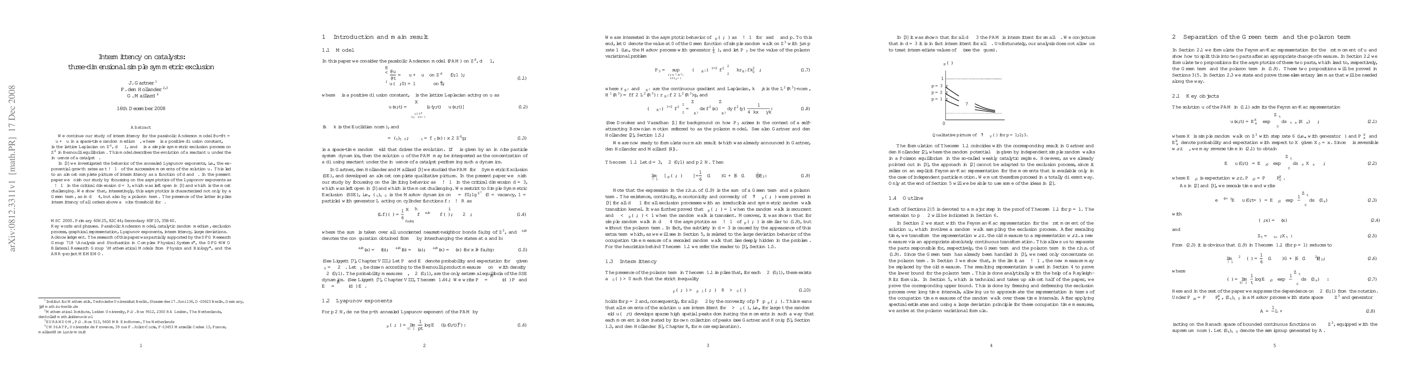 We continue our study of intermittency for the parabolic Anderson model $\partial u/\partial t = \kappa\Delta u + \xi u$ in a space-time random medium $\xi$, where $\kappa$ is a positive diffusion constant, $\Delta$ is the lattice Laplacian on $\Z^d$, $d \geq 1$, and $\xi$ is a simple symmetric exclusion process on $\Z^d$ in Bernoulli equilibrium. This model describes the evolution of a \emph{reactant} $u$ under the influence of a \emph{catalyst} $\xi$. In G\"artner, den Hollander and Maillard (2007) we investigated the behavior of the annealed Lyapunov exponents, i.e., the exponential growth rates as $t\to\infty$ of the successive moments of the solution $u$. This led to an almost complete picture of intermittency as a function of $d$ and $\kappa$. In the present paper we finish our study by focussing on the asymptotics of the Lyaponov exponents as $\kappa\to\infty$ in the \emph{critical} dimension $d=3$, which was left open in G\"artner, den Hollander and Maillard (2007) and which is the most challenging. We show that, interestingly, this asymptotics is characterized not only by a \emph{Green} term, as in $d\geq 4$, but also by a \emph{polaron} term. The presence of the latter implies intermittency of \emph{all} orders above a finite threshold for $\kappa$.