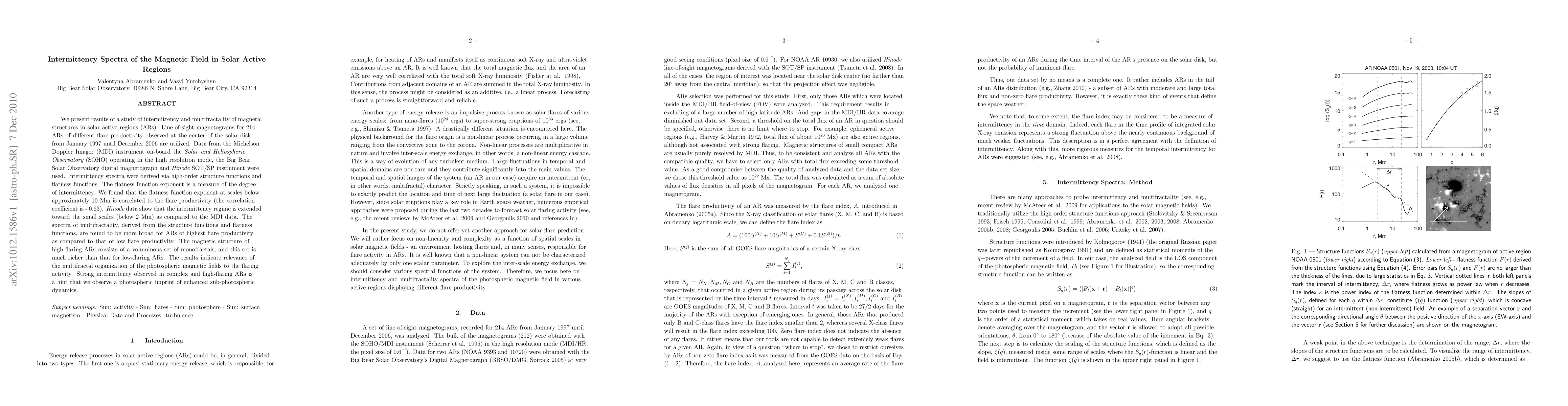 This study investigates the intermittency and multifractality of magnetic structures in solar active regions using magnetograms from various instruments. The flatness function exponent correlates with flare productivity, suggesting a link between magnetic field complexity and flaring activity.