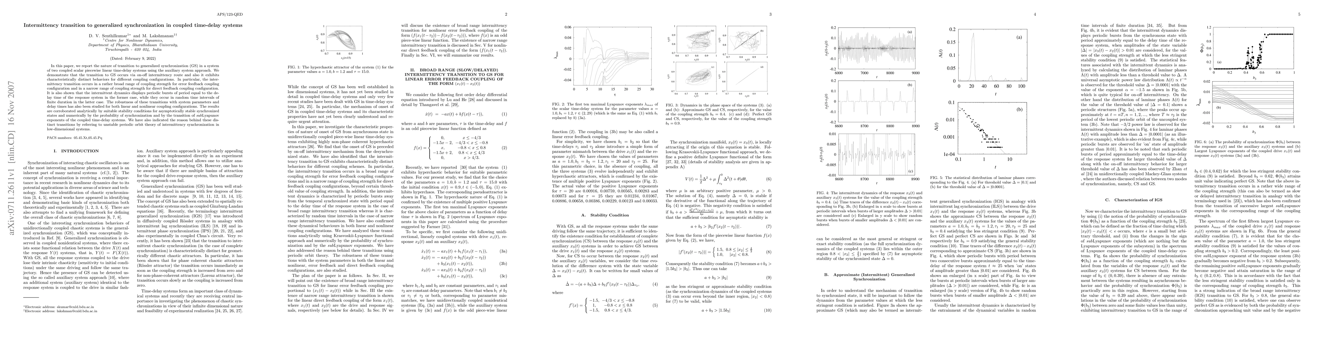 This paper investigates the transition to generalized synchronization in coupled scalar piecewise linear time-delay systems, showing that it occurs via an intermittent route with distinct behaviors depending on coupling configuration. The study reveals broad and narrow transition ranges for error and direct feedback couplings, respectively, and analyzes robustness against system parameters and delays.