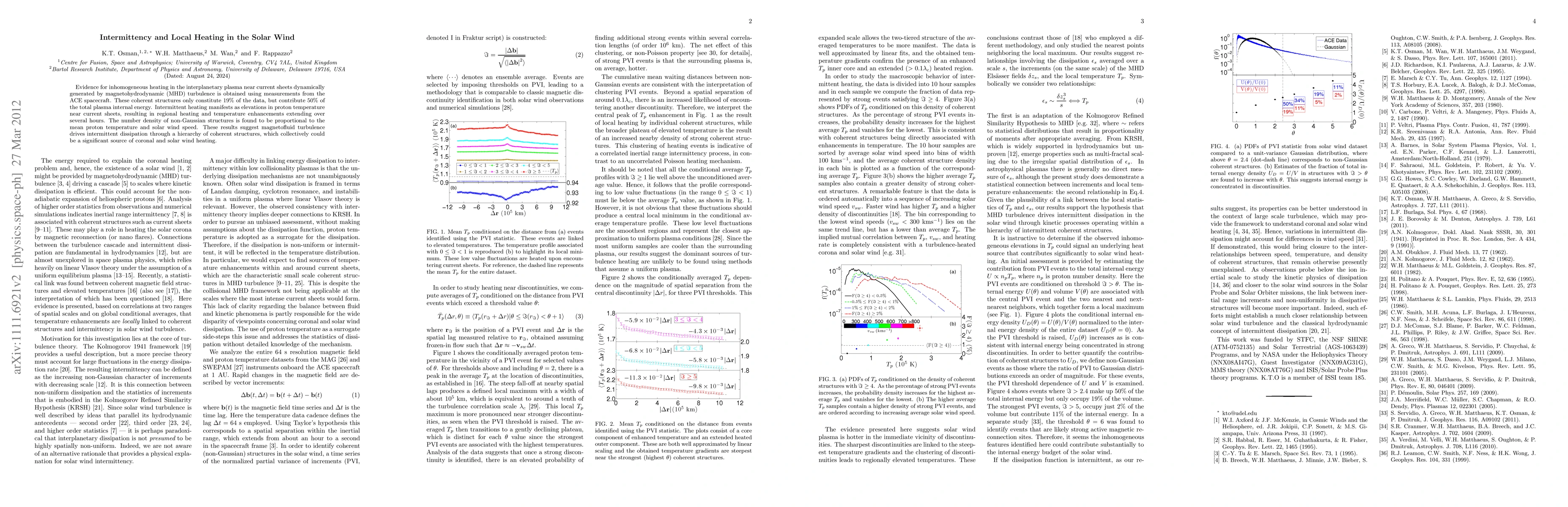 This study reveals that intermittent dissipation and local heating in the solar wind, driven by magnetohydrodynamic turbulence, significantly contribute to the plasma's internal energy, despite coherent structures comprising only 19% of the data. These structures are linked to elevated proton temperatures near current sheets, suggesting a major role in coronal and solar wind heating.