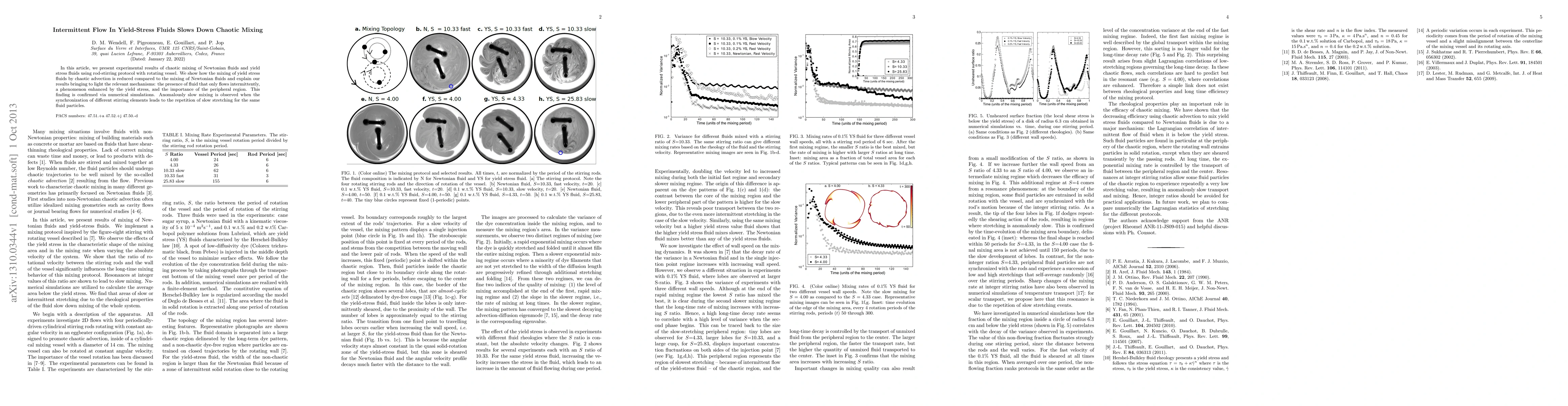 This study experimentally demonstrates that intermittent flow in yield-stress fluids significantly slows down chaotic mixing compared to Newtonian fluids, attributing the effect to the fluid's intermittent flow behavior and the importance of the peripheral region, confirmed by numerical simulations. The synchronization of stirring elements exacerbates this slow mixing by repeatedly stretching the same fluid particles.