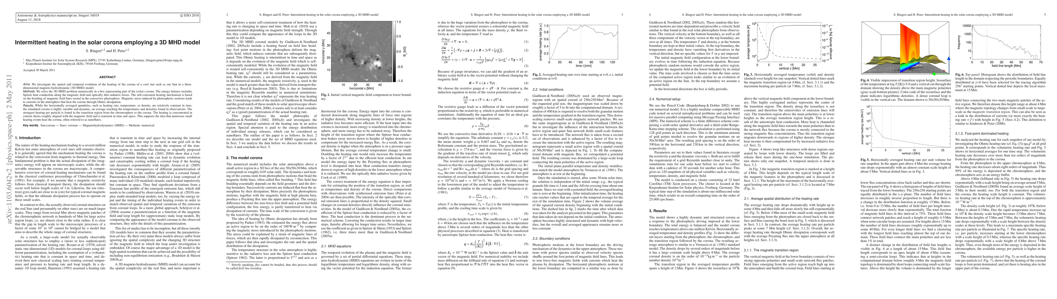 This research employs a 3D MHD model to simulate the intermittent heating of the solar corona, revealing dynamic, transient heating events concentrated in current sheets, supporting the nanoflare theory for coronal heating. The model shows that while average quantities remain stable, the corona exhibits significant variability, aligning with observational data.
