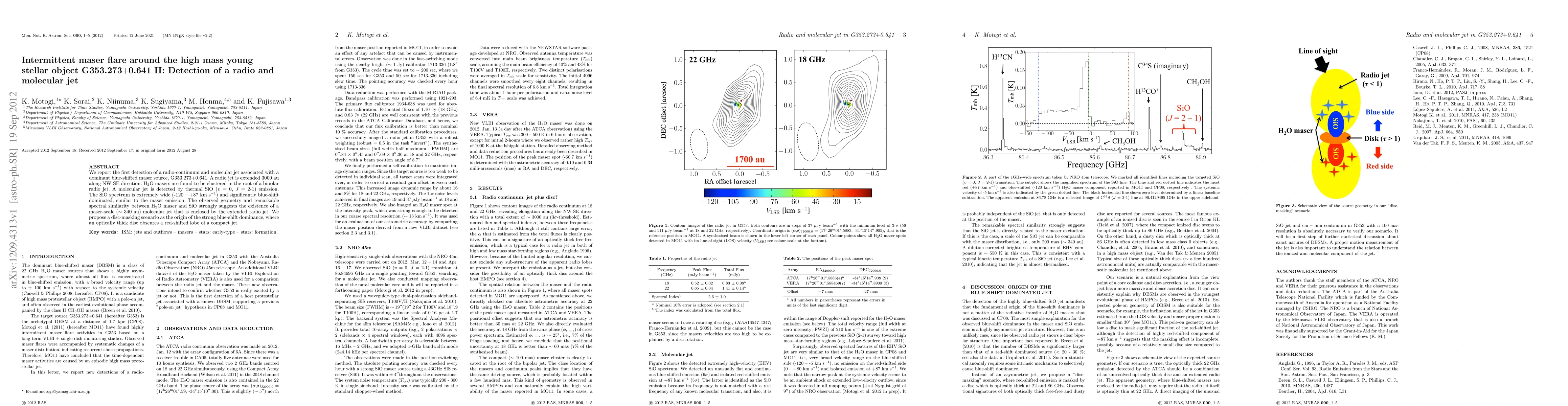 We report the first detection of a radio-continuum and molecular jet associated with a dominant blue-shifted maser source, G353.273+0.641. A radio jet is extended 3000 au along NW-SE direction. H$_{2}$O masers are found to be clustered in the root of a bipolar radio jet. A molecular jet is detected by thermal SiO ($\upsilon$ = 0, $J$ = 2-1) emission. The SiO spectrum is extremely wide (-120 -- +87 km s$^{-1}$) and significantly blue-shift dominated, similar to the maser emission. The observed geometry and remarkable spectral similarity between H$_{2}$O maser and SiO strongly suggests the existence of a maser-scale ($\sim$ 340 au) molecular jet that is enclosed by the extended radio jet. We propose a "disc-masking" scenario as the origin of the strong blue-shift dominance, where an optically thick disc obscures a red-shifted lobe of a compact jet.