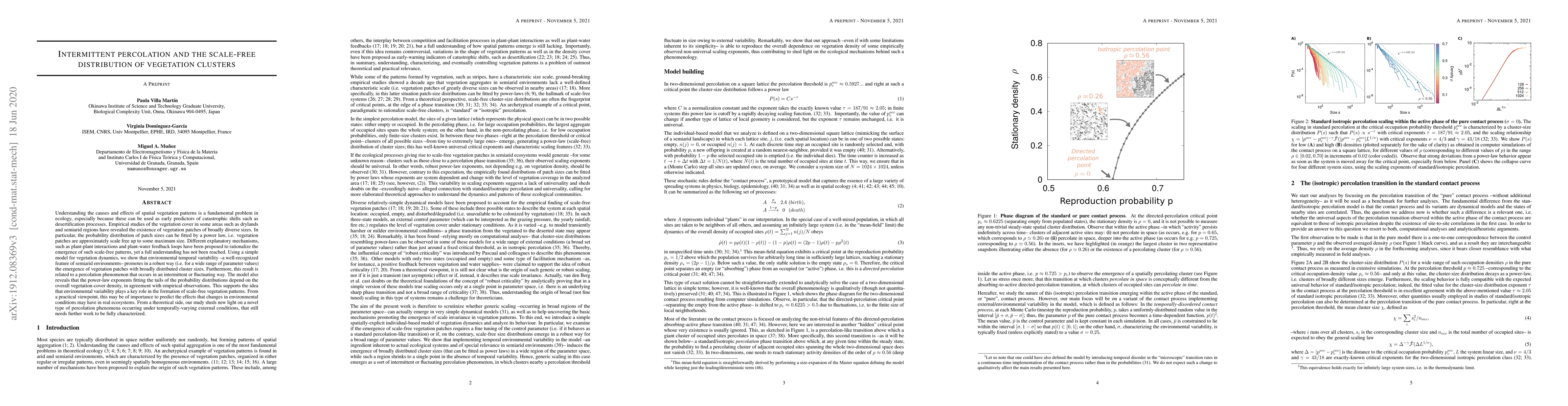This paper investigates how environmental temporal variability in semiarid environments leads to the formation of scale-free vegetation patterns through intermittent percolation. The study demonstrates that such variability robustly promotes diverse vegetation patch sizes, aligning with empirical observations and suggesting its importance in predicting ecosystem changes.