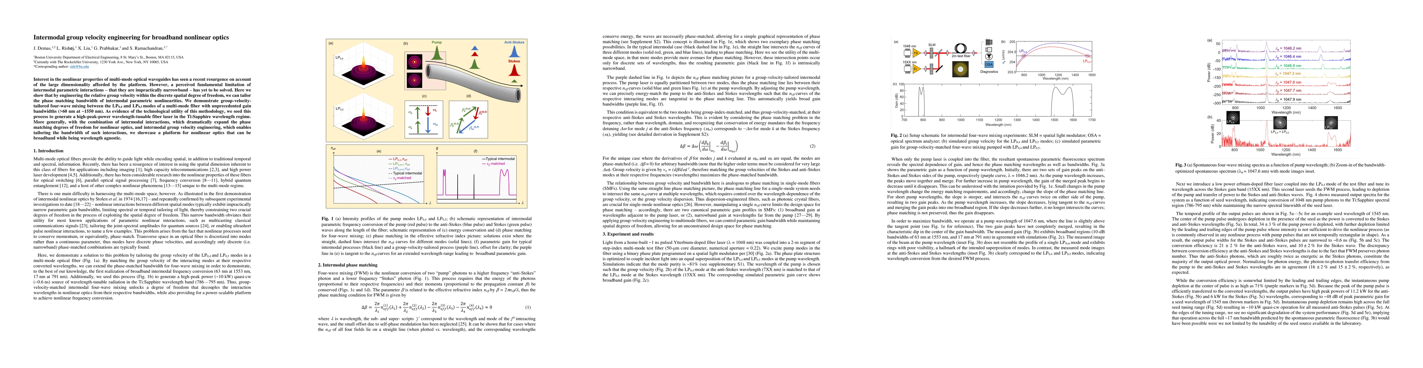 Interest in the nonlinear properties of multi-mode optical waveguides has seen a recent resurgence on account of the large dimensionality afforded by the platform. However, a perceived fundamental limitation of intermodal parametric interactions - that they are impractically narrowband - has yet to be solved. Here we show that by engineering the relative group velocity within the discrete spatial degree of freedom, we can tailor the phase matching bandwidth of intermodal parametric nonlinearities. We demonstrate group-velocity-tailored four-wave mixing between the $LP_{0,4}$ and $LP_{0,5}$ modes of a multi-mode fiber with unprecedented gain bandwidths (>60 nm at ~1550 nm). As evidence of the technological utility of this methodology, we seed this process to generate a high-peak-power wavelength-tunable fiber laser in the Ti:Sapphire wavelength regime. More generally, with the combination of intermodal interactions, which dramatically expand the phase matching degrees of freedom for nonlinear optics, and intermodal group velocity engineering, which enables tailoring the bandwidth of such interactions, we showcase a platform for nonlinear optics that can be broadband while being wavelength agnostic.