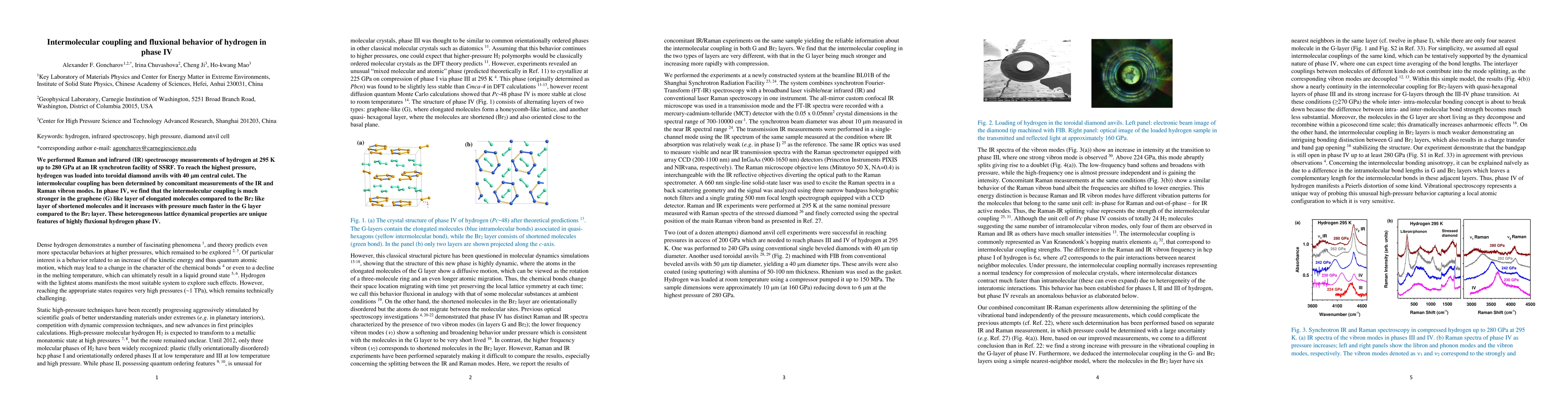 Researchers studied hydrogen at high pressure using Raman and infrared spectroscopy, finding that intermolecular coupling is stronger in one layer of elongated molecules than the other, increasing with pressure faster in the longer layer.