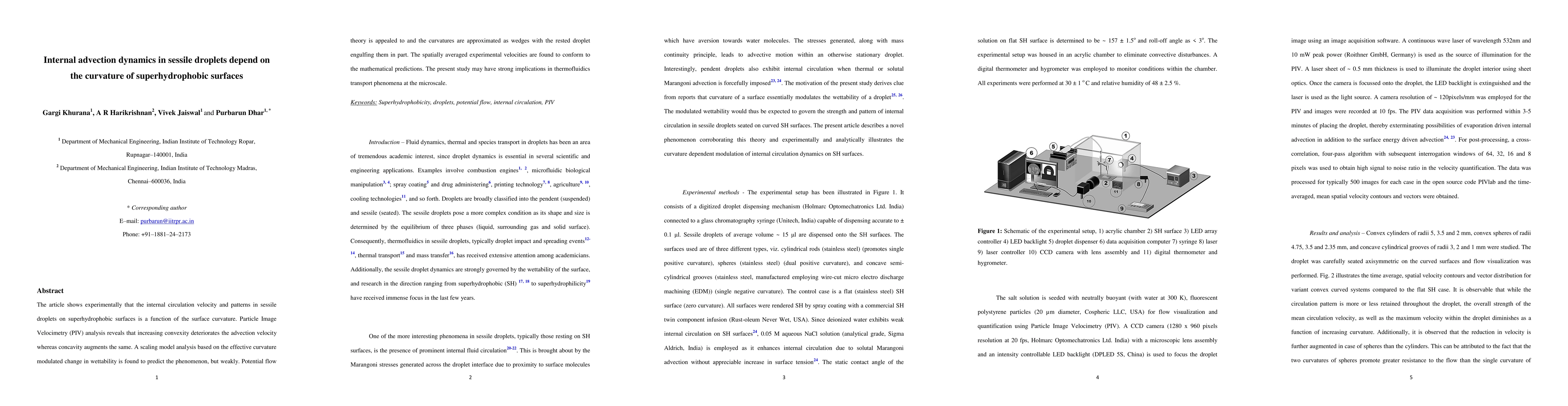 This study reveals that surface curvature on superhydrophobic surfaces significantly influences the internal advection dynamics in sessile droplets, with increased convexity reducing advection velocity and increased concavity enhancing it, as shown by Particle Image Velocimetry. Although a scaling model based on effective curvature can predict these effects, it has limited accuracy.