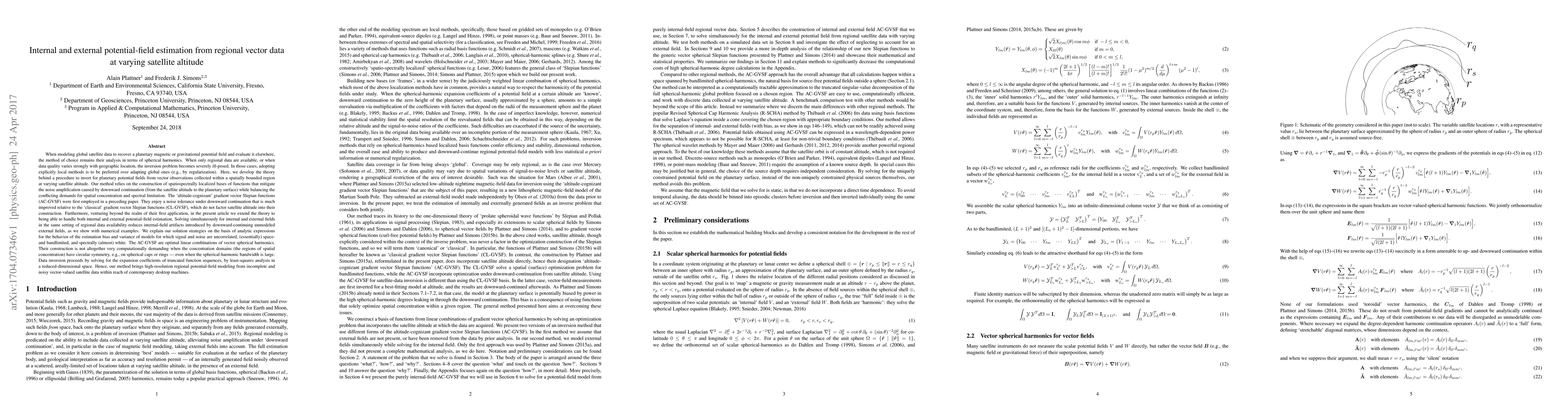 This paper develops a localized method for estimating internal and external planetary potential fields from regional vector satellite data at varying altitudes. It introduces a procedure using spatiospectrally localized bases to mitigate noise amplification and reduce artifacts, enabling high-resolution regional modeling from incomplete and noisy data.