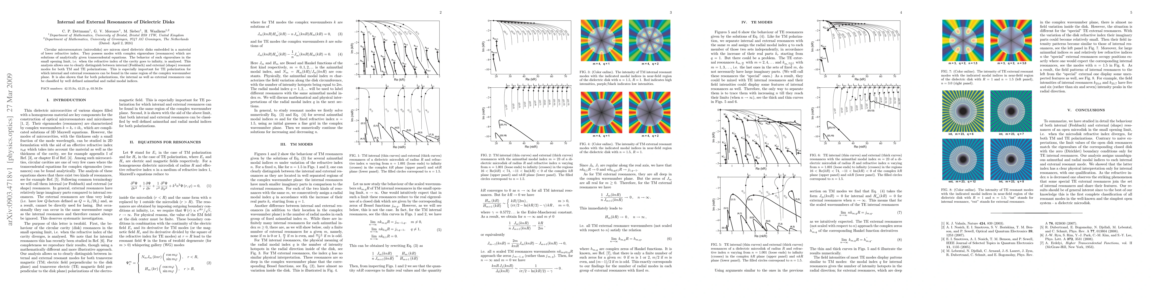 Researchers analyzed microdisks with complex eigenvalues to distinguish between internal and external resonances in dielectric disks, revealing distinct characteristics for each polarization type.