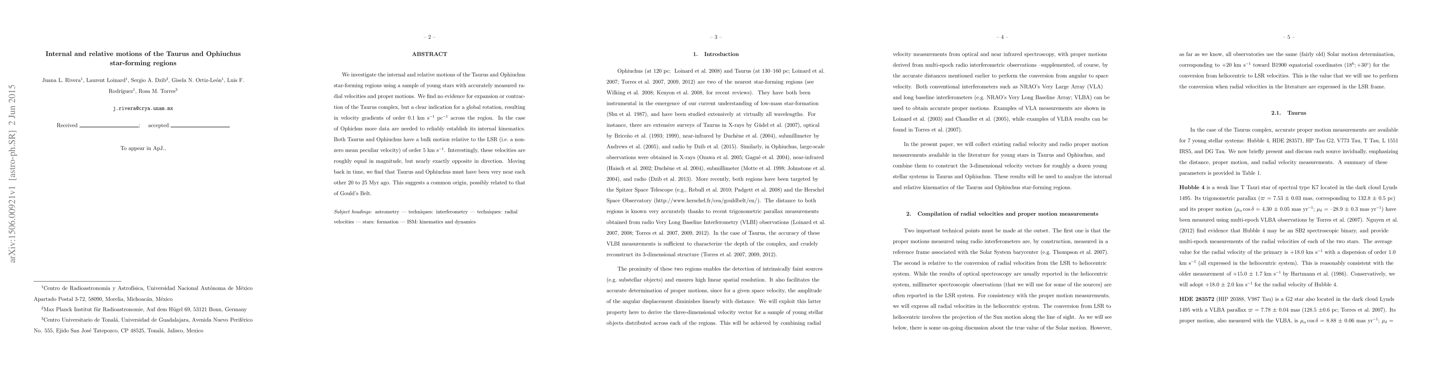 Summary: This study examines the internal and relative motions of Taurus and Ophiuchus star-forming regions using young stars' radial velocities and proper motions. While Taurus shows no expansion or contraction, it exhibits global rotation, suggesting a common origin linked to Gould's Belt, unlike Ophiuchus.