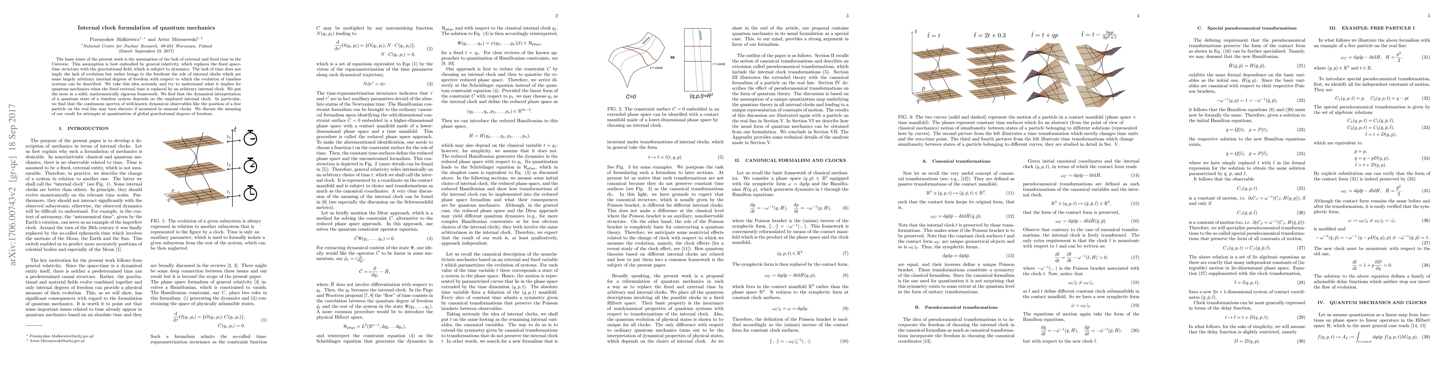 The basic tenet of the present work is the assumption of the lack of external and fixed time in the Universe. This assumption is best embodied by general relativity, which replaces the fixed space-time structure with the gravitational field, which is subject to dynamics. The lack of time does not imply the lack of evolution but rather brings to the forefront the role of internal clocks which are some largely arbitrary internal degrees of freedom with respect to which the evolution of timeless systems can be described. We take this idea seriously and try to understand what it implies for quantum mechanics when the fixed external time is replaced by an arbitrary internal clock. We put the issue in a solid, mathematically rigorous framework. We find that the dynamical interpretation of a quantum state of a timeless system depends on the employed internal clock. In particular, we find that the continuous spectra of well-known dynamical observables like the position of a free particle on the real line may turn discrete if measured in unusual clocks. We discuss the meaning of our result for attempts at quantization of global gravitational degrees of freedom.