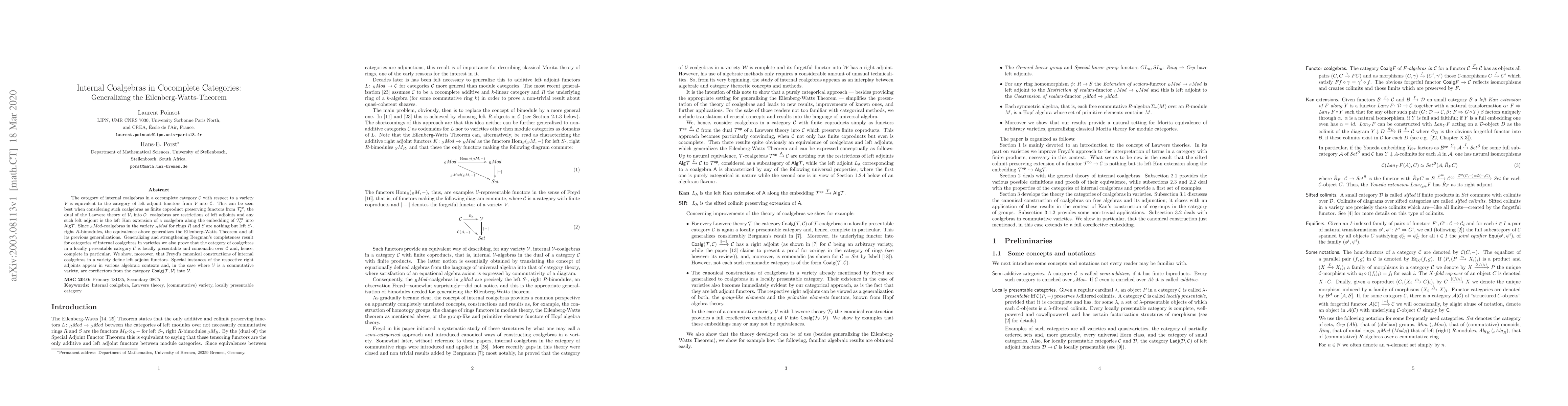 The category of internal coalgebras in a cocomplete category $\mathcal{C}$ with respect to a variety $\mathcal{V}$ is equivalent to the category of left adjoint functors from $\mathcal{V}$ into $\mathcal{C}$. This can be seen best when considering such coalgebras as finite coproduct preserving functors from $\mathcal{T}_\mathcal{V}^\mathsf{op}$, the dual of the Lawvere theory of $\mathcal{V}$, into $\mathcal{C}$: coalgebras are restrictions of left adjoints and any such left adjoint is the left Kan extension of a coalgebra along the embedding of $\mathcal{T}_\mathcal{V}^\mathsf{op}$ into $\mathsf{Alg}\mathcal{T}$. Since ${_S\mathit{Mod}}$-coalgebras in the variety ${_R\mathit{Mod}}$ for rings $R$ and $S$ are nothing but left $S$-, right $R$-bimodules, the equivalence above generalizes the Eilenberg-Watts Theorem and all its previous generalizations. Generalizing and strengthening Bergman's completeness result for categories of internal coalgebras in varieties we also prove that the category of coalgebras in a locally presentable category $\mathcal{C}$ is locally presentable and comonadic over $\mathcal{C}$ and, hence, complete in particular. We show, moreover, that Freyd's canonical constructions of internal coalgebras in a variety define left adjoint functors. Special instances of the respective right adjoints appear in various algebraic contexts and, in the case where $\mathcal{V}$ is a commutative variety, are coreflectors from the category $\mathsf{Coalg}(\mathcal{T},\mathcal{V})$ into $\mathcal{V}$.