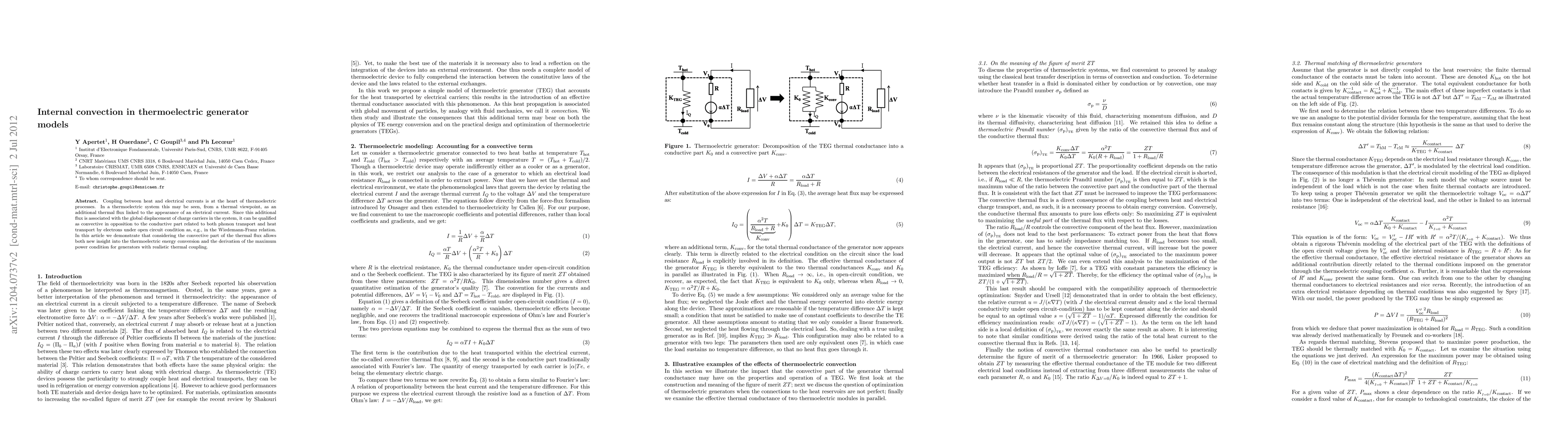 This paper explores the role of internal convection in thermoelectric generators, showing that considering the convective thermal flux alongside conductive transport provides new insights into thermoelectric energy conversion and leads to a refined maximum power condition for practical thermoelectric systems.
