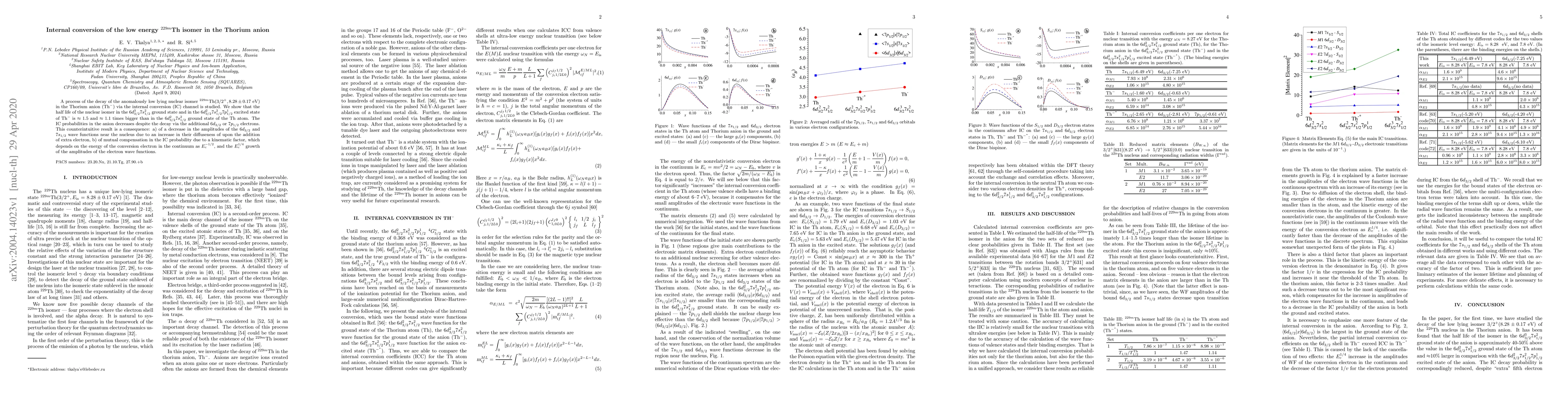 The half-life of a Thorium isomer in a negatively charged ion is found to be significantly longer than in the neutral atom, with internal conversion probabilities surprisingly decreasing despite the presence of additional electrons.