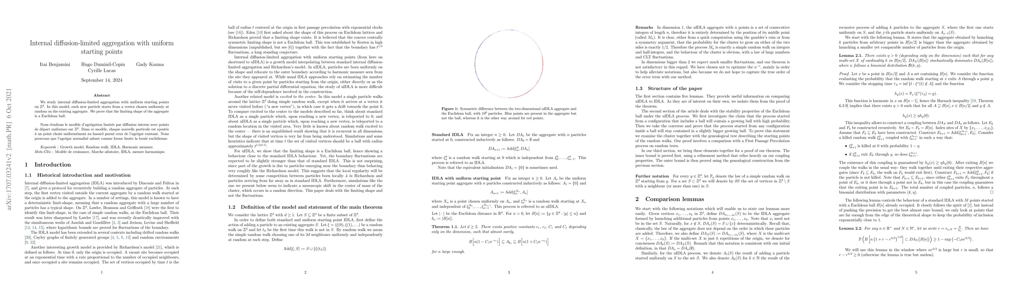 This paper investigates internal diffusion-limited aggregation where new particles are uniformly chosen from existing aggregate vertices. The authors prove that the aggregate's limiting shape is a Euclidean ball.