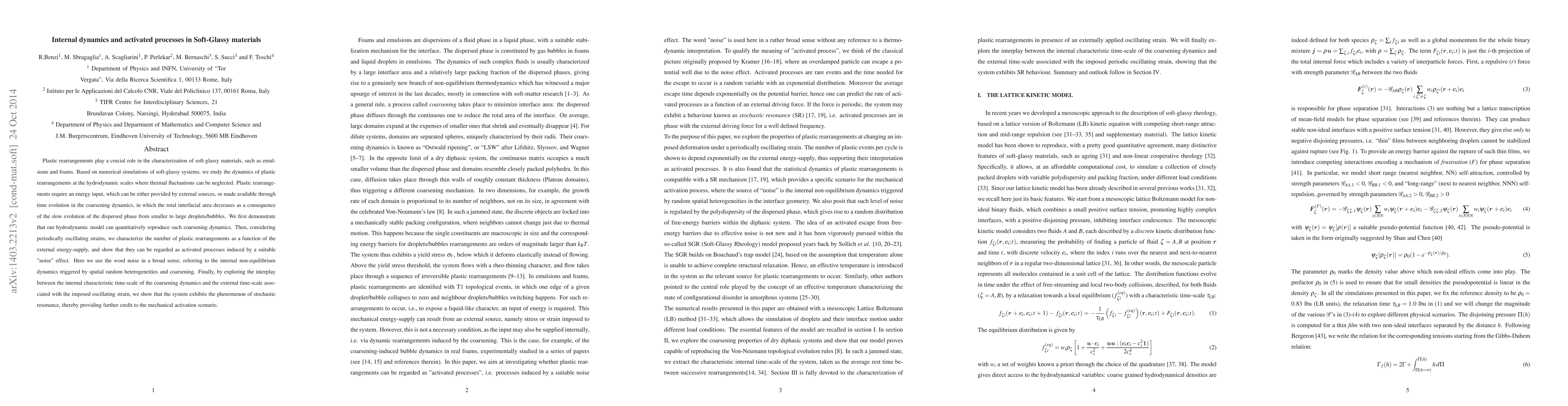 This paper investigates the dynamics of plastic rearrangements in soft-glassy materials through numerical simulations, demonstrating that such rearrangements can be modeled as activated processes driven by internal non-equilibrium dynamics and "noise," and showing stochastic resonance occurs when internal and external time-scales interact.