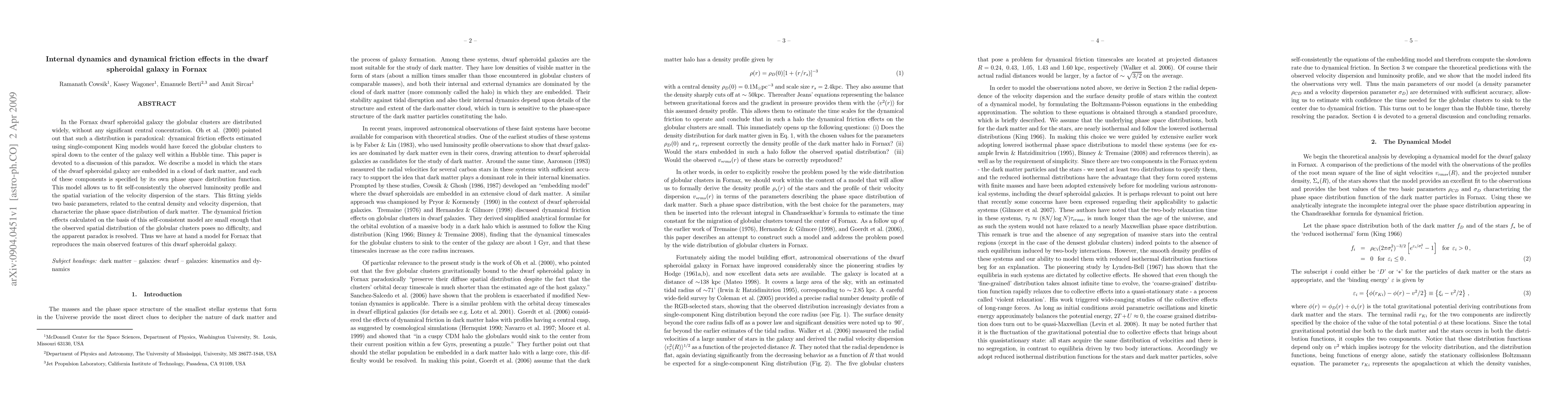 This paper resolves the paradox of the widely distributed globular clusters in the Fornax dwarf spheroidal galaxy by proposing a self-consistent model where stars and dark matter each have their own phase space distribution functions. The calculated dynamical friction effects are sufficiently small to explain the observed spatial distribution, thus resolving the paradox.