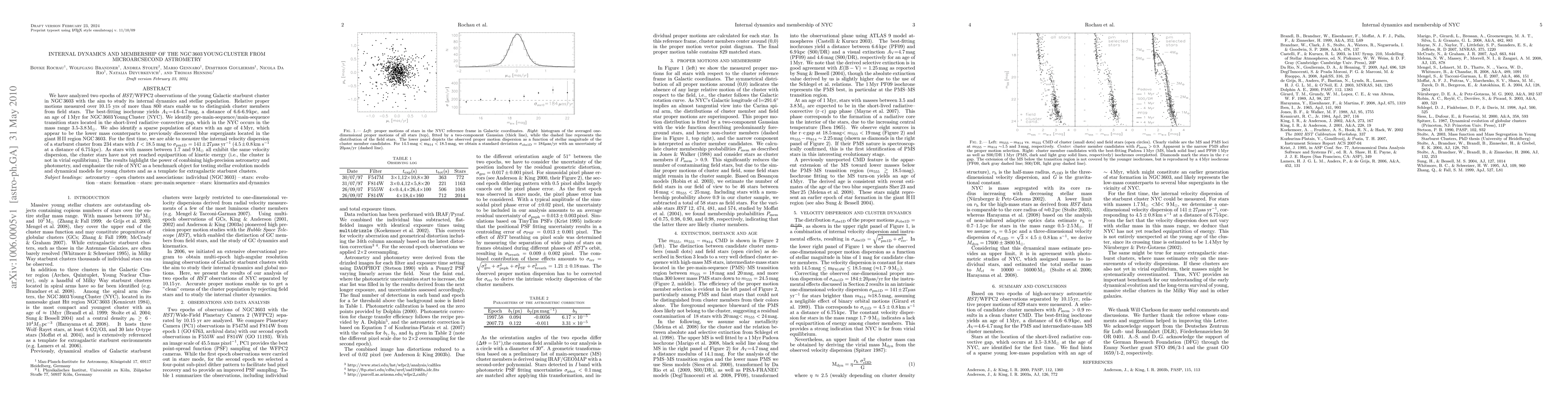 Researchers analyzed NGC 3603 Young Cluster using HST/WFPC2 observations to study internal dynamics and stellar population, finding a distance of 6.6-6.9 kpc and an age of 1 Myr, with some stars having ages of 4 Myr.