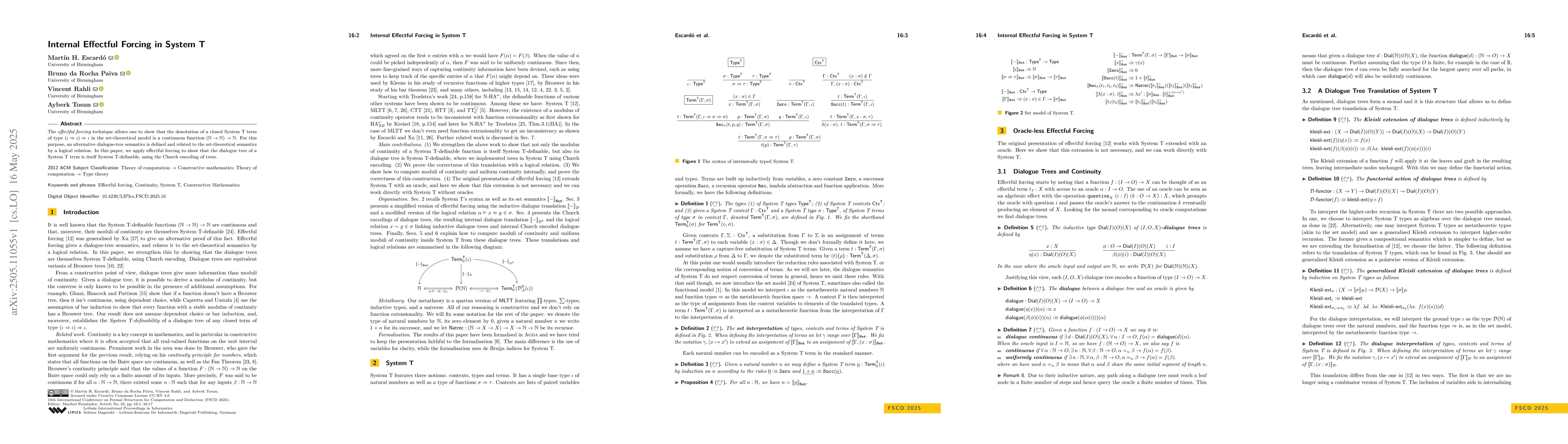 A research paper demonstrates that System T terms can define their own dialogue trees using effectful forcing, a technique for showing mathematical properties.