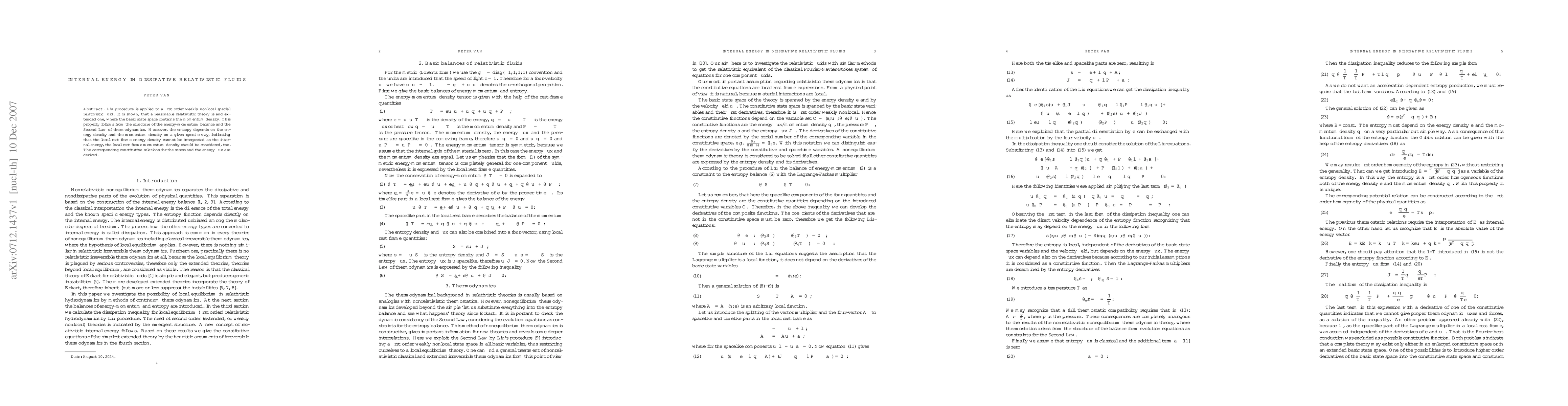 Liu procedure is applied to a first order weakly nonlocal special relativistic fluid. It is shown, that a reasonable relativistic theory is and extended one, where the basic state space contains the momentum density. This property follows from the structure of the energy-momentum balance and the Second Law of thermodynamics. Moreover, the entropy depends on the energy density and the momentum density on a given specific way, indicating that the local rest frame energy density cannot be interpreted as the internal energy, the local rest frame momentum density should be considered, too. The corresponding constitutive relations for the stress and the energy flux are derived.