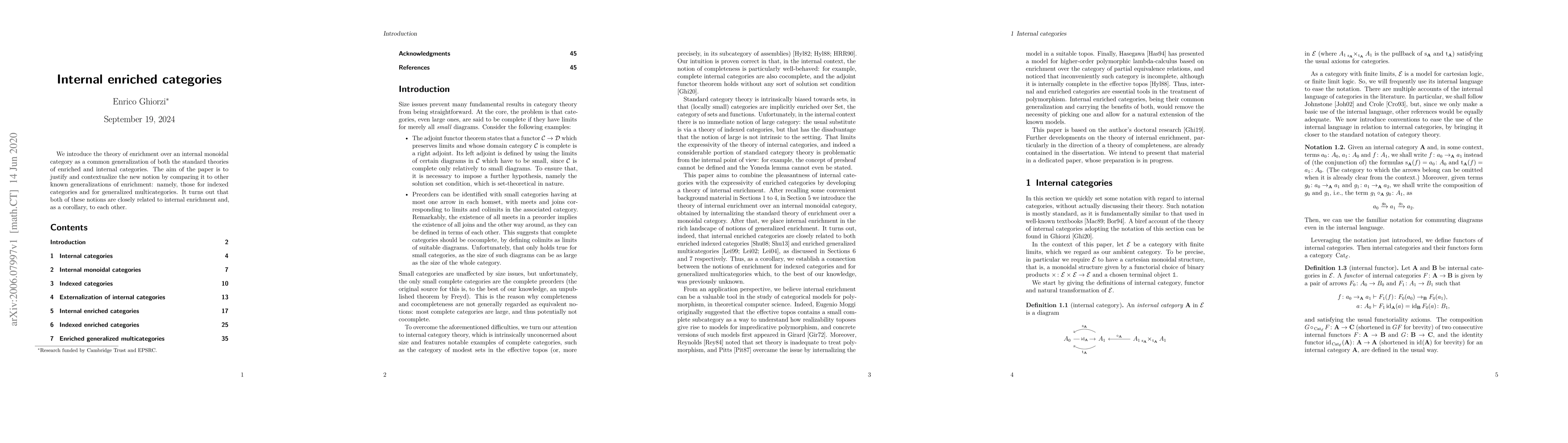 This paper proposes the concept of internal enriched categories as a unifying framework for enriched and internal categories, showing its connection to indexed categories and generalized multicategories, thereby establishing a broader context for these mathematical structures.