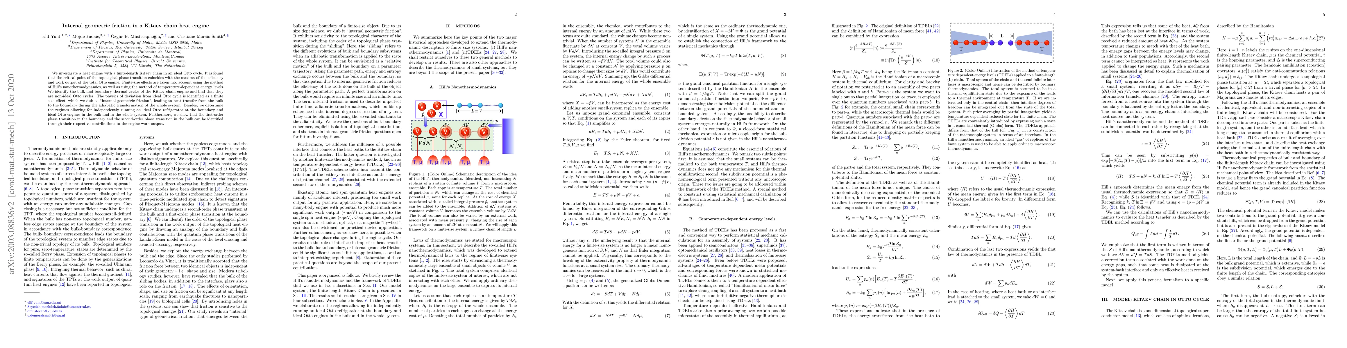 This paper explores a finite-length Kitaev chain functioning as a heat engine in an Otto cycle, revealing that maximum efficiency and work output occur at the topological phase transition. It identifies internal geometric friction as a finite-size effect causing heat transfer from the bulk to the boundary, deviating from ideal Otto cycle behavior.