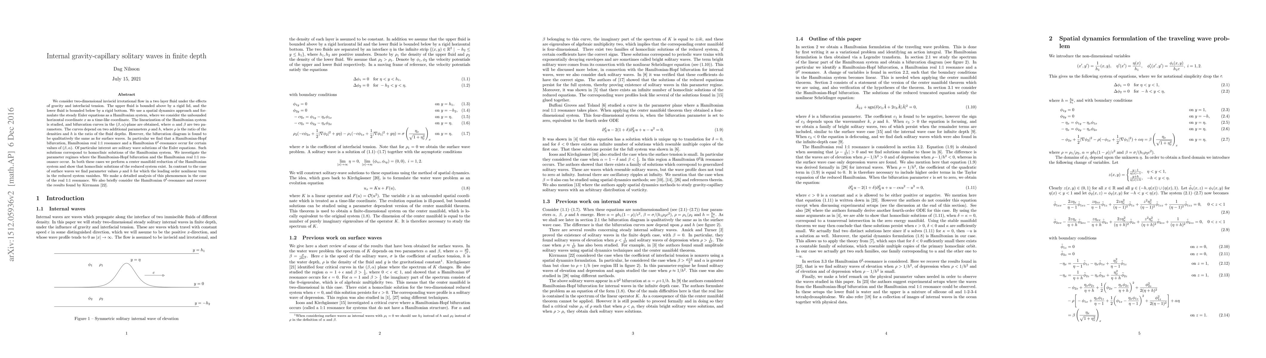 Researchers studied internal gravity-capillary solitary waves in a two-layer fluid with rigid boundaries, finding that certain conditions lead to Hamiltonian-Hopf bifurcation and real 1:1 resonance, resulting in homoclinic solutions with varying leading-order nonlinear terms.