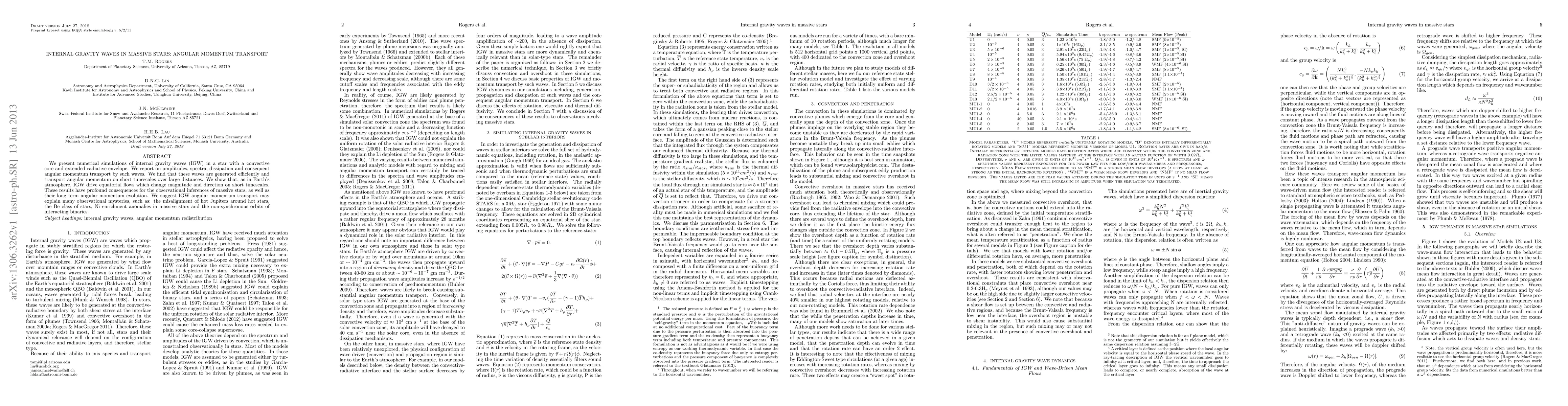 The paper presents detailed numerical simulations of internal gravity waves in massive stars, providing insights into their generation, propagation, and role in angular momentum transport.