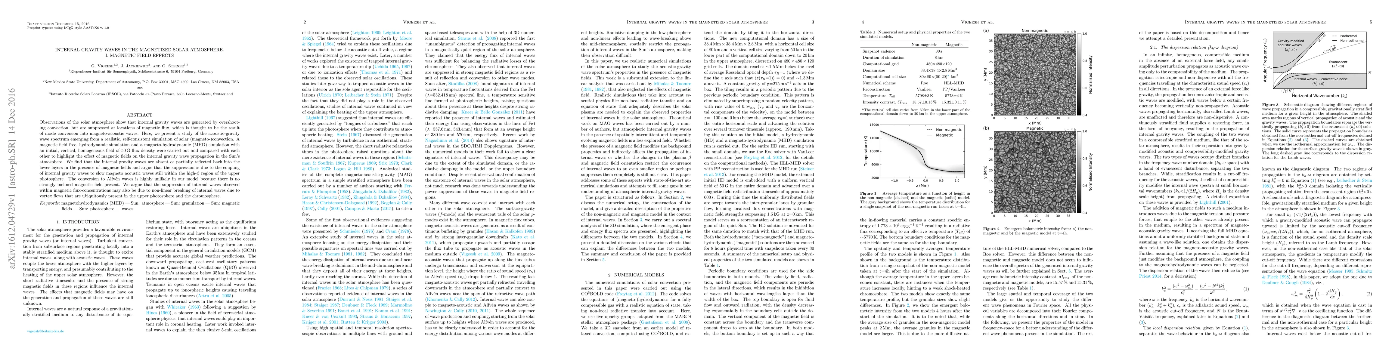 This study investigates the impact of magnetic fields on internal gravity waves in the solar atmosphere using self-consistent simulations. It finds that magnetic fields suppress internal gravity waves, likely due to their coupling with slow magneto-acoustic waves, and suggests that non-linear breaking of these waves by vortex flows may also contribute to the suppression.