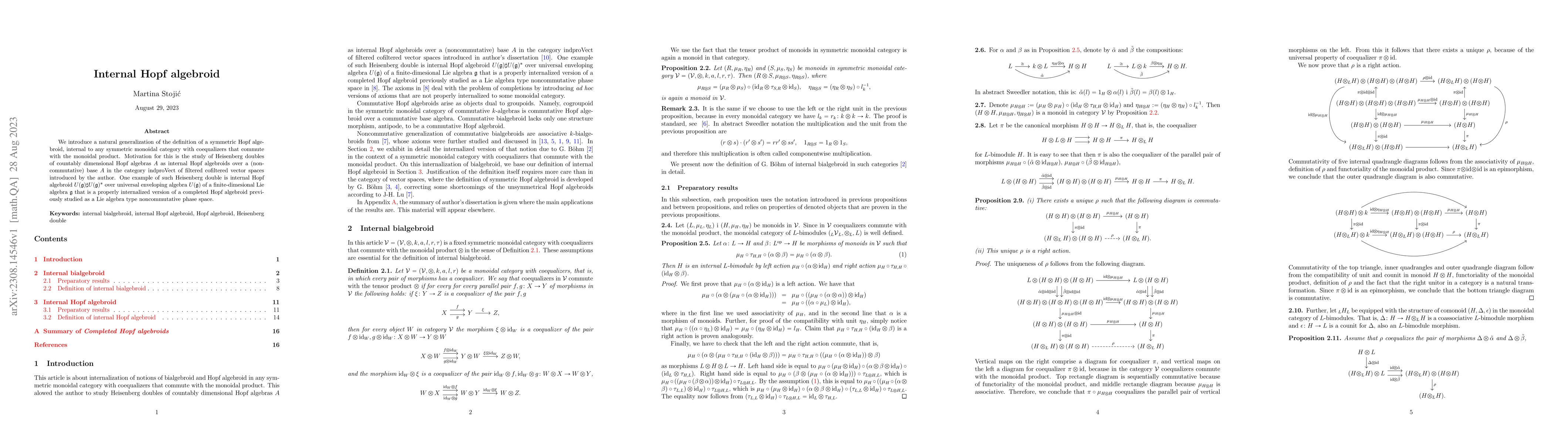 We introduce a natural generalization of the definition of a symmetric Hopf algebroid, internal to any symmetric monoidal category with coequalizers that commute with the monoidal product. Motivation for this is the study of Heisenberg doubles of countably dimensional Hopf algebras $A$ as internal Hopf algebroids over a (noncommutative) base $A$ in the category $\mathrm{indproVect}$ of filtered cofiltered vector spaces introduced by the author. One example of such Heisenberg double is internal Hopf algebroid $U(\mathfrak{g}) \sharp U(\mathfrak{g})^*$ over universal enveloping algebra $U(\mathfrak{g})$ of a finite-dimesional Lie algebra $\mathfrak{g}$ that is a properly internalized version of a completed Hopf algebroid previously studied as a Lie algebra type noncommutative phase space.