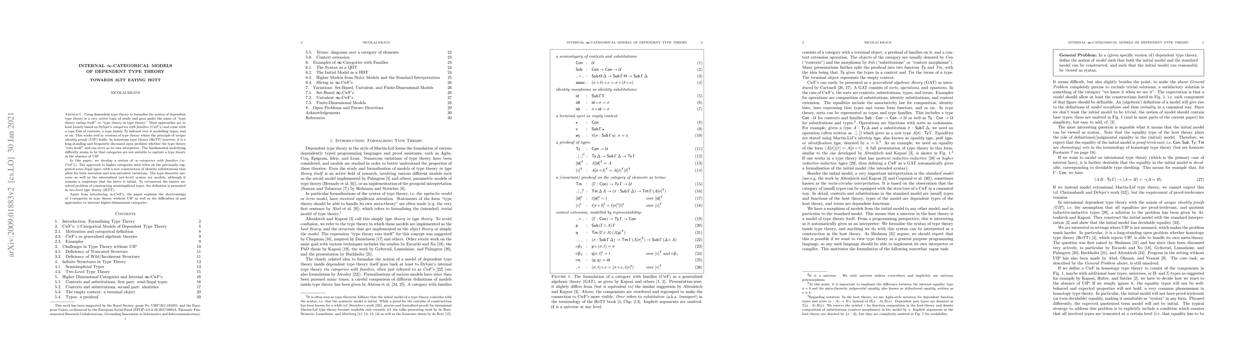 Using dependent type theory to formalise the syntax of dependent type theory is a very active topic of study and goes under the name of "type theory eating itself" or "type theory in type theory." Most approaches are at least loosely based on Dybjer's categories with families (CwF's) and come with a type CON of contexts, a type family TY indexed over it modelling types, and so on. This works well in versions of type theory where the principle of unique identity proofs (UIP) holds. In homotopy type theory (HoTT) however, it is a long-standing and frequently discussed open problem whether the type theory "eats itself" and can serve as its own interpreter. The fundamental underlying difficulty seems to be that categories are not suitable to capture a type theory in the absence of UIP. In this paper, we develop a notion of $\infty$-categories with families ($\infty$-CwF's). The approach to higher categories used relies on the previously suggested semi-Segal types, with a new construction of identity substitutions that allow for both univalent and non-univalent variations. The type-theoretic universe as well as the internalised syntax are models, although it remains a conjecture that the latter is initial. To circumvent the known unsolved problem of constructing semisimplicial types, the definition is presented in two-level type theory (2LTT). Apart from introducing $\infty$-CwF's, the paper explains the shortcomings of 1-categories in type theory without UIP as well as the difficulties of and approaches to internal higher-dimensional categories.