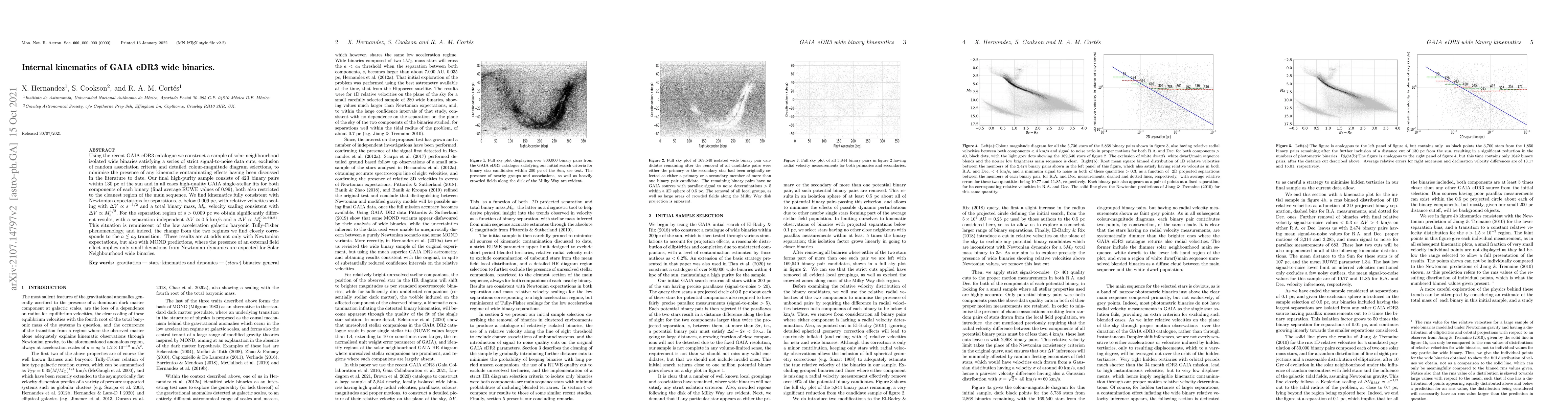 This study analyzes the internal kinematics of 423 high-purity wide binaries from the GAIA eDR3 catalogue, finding Newtonian dynamics for separations below 0.009 pc. For larger separations, it observes a separation-independent velocity and a different mass-velocity relationship, deviating from both Newtonian and MOND predictions.