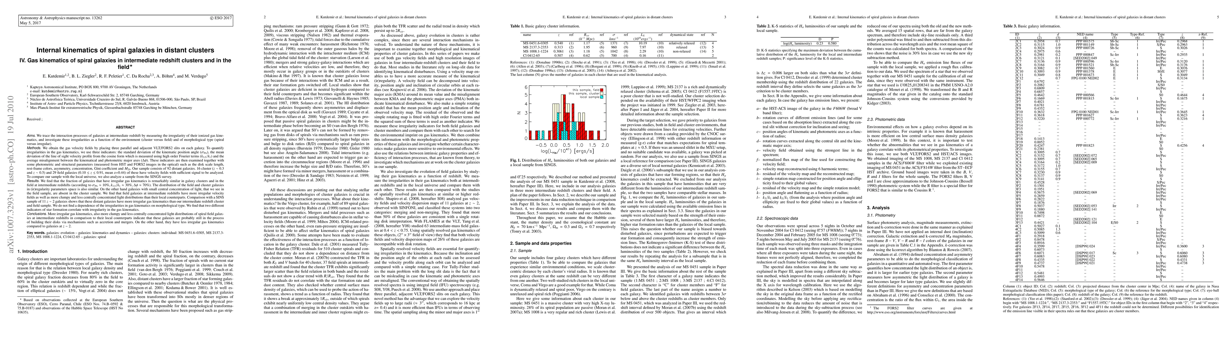 This study investigates the ionized gas kinematics of spiral galaxies at intermediate redshifts, finding similar fractions of galaxies with irregular gas kinematics in clusters and in the field. It concludes that field galaxies exhibit more irregular velocity fields and less central concentration compared to local galaxies, suggesting ongoing disk formation processes.